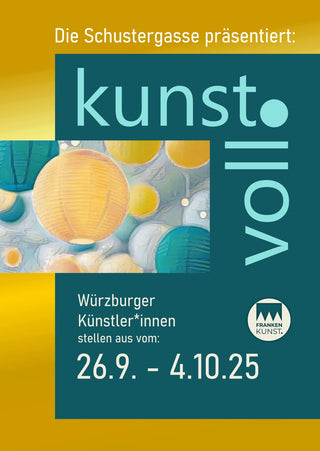 Lust auf Kunst, Inspiration und besondere Entdeckungen mitten in Würzburg? Dann besuchen Sie die Schustergasse – die charmante Einkaufsstraße zwischen Domstraße und Marktplatz! Vom 26.9. - 4.10.25 verwandeln sich die Geschäfte in kleine Galerien. Sie können Kunstwerke in den liebevoll geführten Läden bestaunen, an spannenden Workshops teilnehmen und kreative Live-Aktionen erleben.