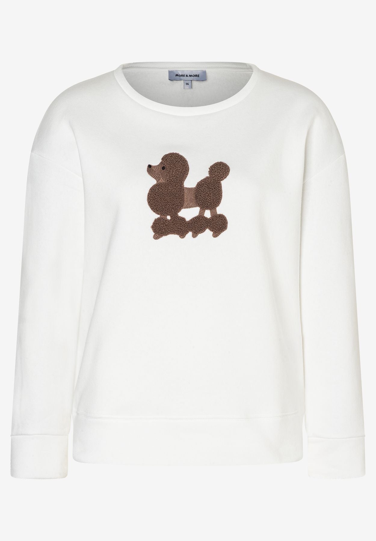 Kuschelig, stylish und mit einem Augenzwinkern präsentiert sich das offwhite-farbene Sweatshirt von MORE & MORE und zieht alle Blicke auf sich. Der süße, braune Pudel auf der Front ist aus Frottéstoff und verleiht dem Trendteil eine verspielte und zugleich hochwertige Note. Die weiche Baumwoll-Mischung und der lässige Schnitt sorgen für maximalen Tragekomfort für entspannte Tage mit Stil.