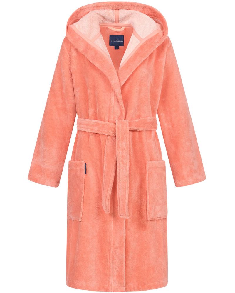 Hochwertiger, kurzer Damen Bademantel aus softer Multifaser Qualität mit Testnote "Sehr Gut" für Hautsensorik (Hohenstein Institute Label Geprüftes Wellnesstextil Prüfnummer HL 15.1.11.0364) ausgezeichnet. Der Mantel hat eine sportliche Kapuze und einen bequemen Schnitt mit Bindegürtel und 2 aufgesetzten Taschen. Eine Tasche davon mit Reißverschluss-Innentasche. Das Material ist sehr weich und anschmiegsam. Qualität: 40% Polyester (Microfaser), 30% Baumwolle, 30% Viskose (Bambus). Rückenlänge: 100 cm