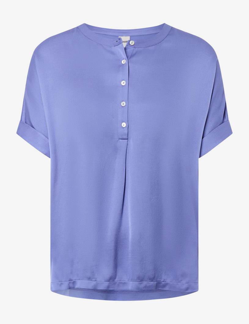 Ein feminines Essential mit moderner Leichtigkeit – das Hybridshirt für Damen im Style Claire.S verleiht schlichten Looks ein elegantes Finish.. Der entspannte Schnitt mit überschnittenen Schultern, angeschnittenen Ärmeln und einer kurzen Knopfleiste verleiht dem Look eine unaufgeregte Struktur. Dezente Details wie der schmale Rundhalsausschnitt und die fixierten Ärmelaufschläge unterstreichen den minimalistischen Stil und machen das Shirt zu einem vielseitigen Begleiter für Büro, Freizeit oder gepflegte Casual-Outfits. Die fließende Vorderseite bringt eine feminine Note ins Spiel und sorgt für eine sanfte, elegante Silhouette. Im Kontrast dazu steht das Rückenteil, das bewusst auf Bewegungsfreiheit und Tragekomfort setzt – eine Kombination, die nicht nur optisch harmoniert, sondern sich auch angenehm auf der Haut anfühlt. Gefertigt ist das Vorderteil aus hochwertiger Viskose mit geschmeidigem Fall, während die Rückseite aus softem Jersey besteht, der für eine flexible Passform sorgt.