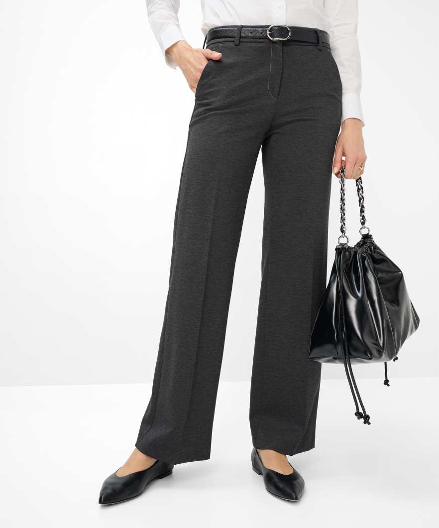 Mit ihrer entspannten Eleganz ist die Palazzohose im STYLE MAINE eine ideale Wahl für stilbewusste Frauen, die den Herbst in vollen Zügen genießen möchten. Die gerade, weit geschnittene Silhouette der Hose im Wide Leg kombiniert zeitlose Klasse mit modernem Komfort. Die normale Leibhöhe und die durchdachten Details wie französische Taschen und eine Leistengesäßtasche unterstreichen ihr hochwertiges Erscheinungsbild. Auch der Bügelbruch verstärkt diese elegante Optik. Die Finest Jersey-Qualität, bekannt für eine geschmeidige Textur und elastische Qualität, sorgt für ein unvergleichlich angenehmes Tragegefühl und macht die Damenhose zu einem vielseitigen Begleiter. Der softe Viskosemix bietet sowohl exzellente Formstabilität als auch Farbbrillanz. Fazit: Mit dieser Hose finden Sie die perfekte Mischung aus Komfort und Stil.