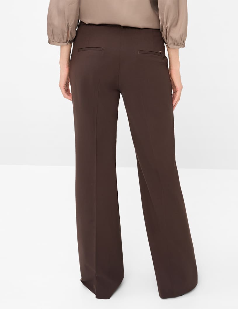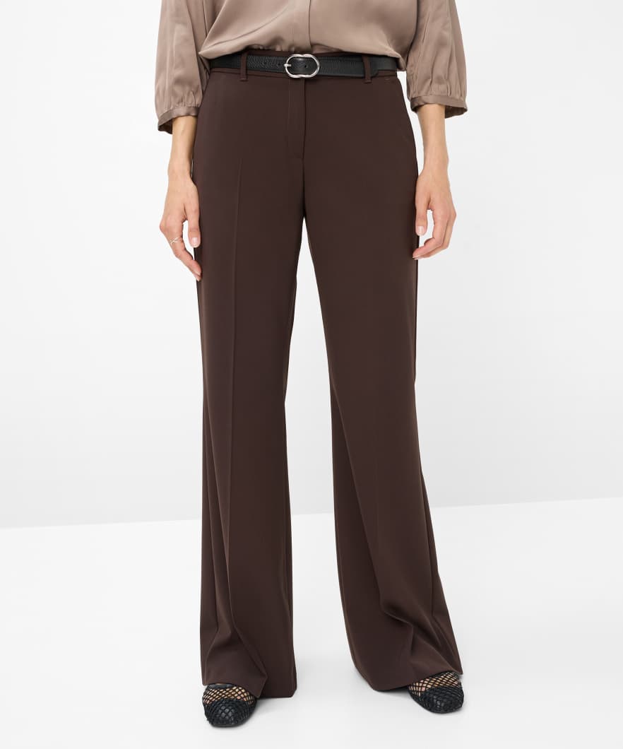 Mit ihrem fließenden Fall und der weit ausgestellten Silhouette ist die Palazzohose im STYLE MAINE ein Must-have für die trendbewusste Frau in der aktuellen Herbst/Winter-Saison. Diese Hose überzeugt durch ihren hochmodischen Schnitt im Wide Leg Boot mit normaler Leibhöhe, die eine schmeichelhafte Passform bietet und zugleich einen markanten Look kreiert. Dabei verleiht die Flatfront der Damenhose eine klare, zeitlose Optik, die durch klassische Stylingelemente, wie dem eleganten Bügelbruch und den französischen Eingrifftaschen, stilvoll unterstrichen wird. Gelungen ist ebenfalls das innenliegende Gummiband, das für bequemen Tragekomfort sorgt. Gefertigt aus einem hochwertigen Materialmix mit Schurwolle beeindruckt diese Damenhose mit ihrer weichen Haptik, die sowohl Wärme als auch Atmungsaktivität bietet. Dabei zeichnet sich die Fluid Wool-Qualität mit einem geschmeidigen Fall und einer edle, soften Haptik aus.