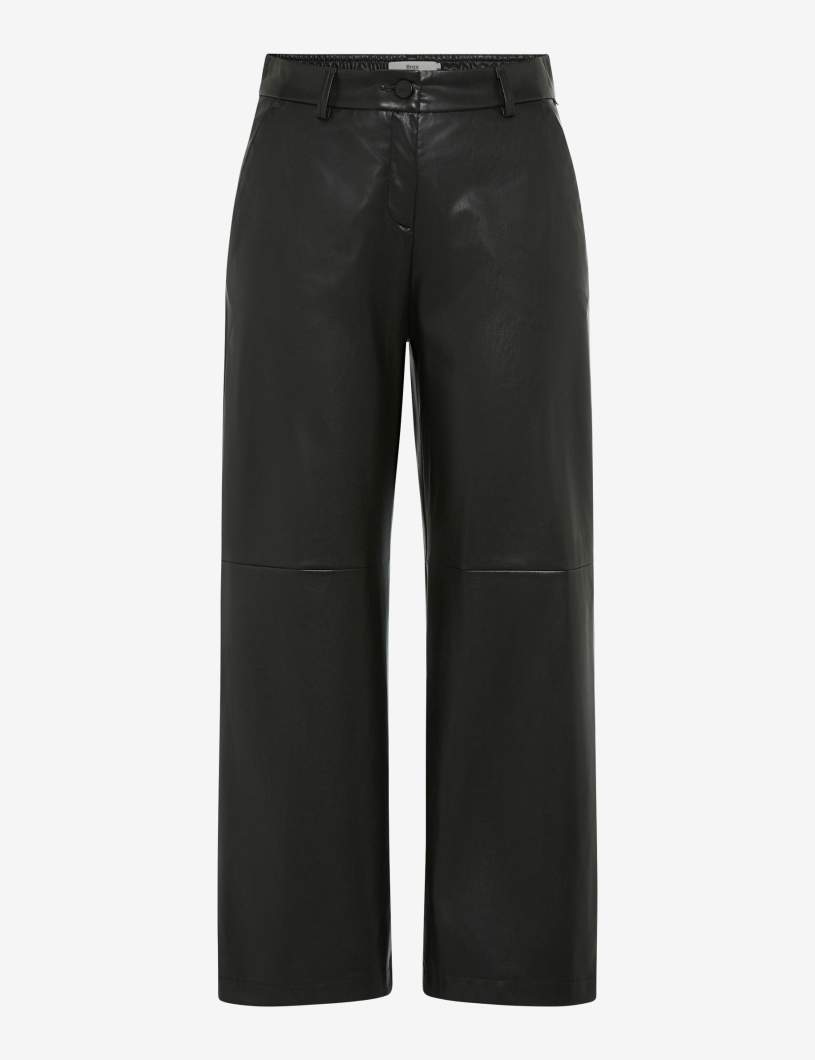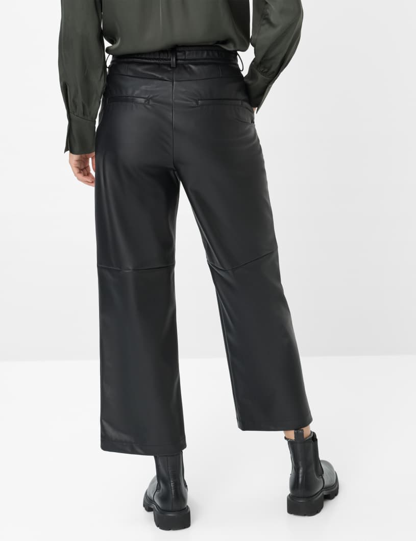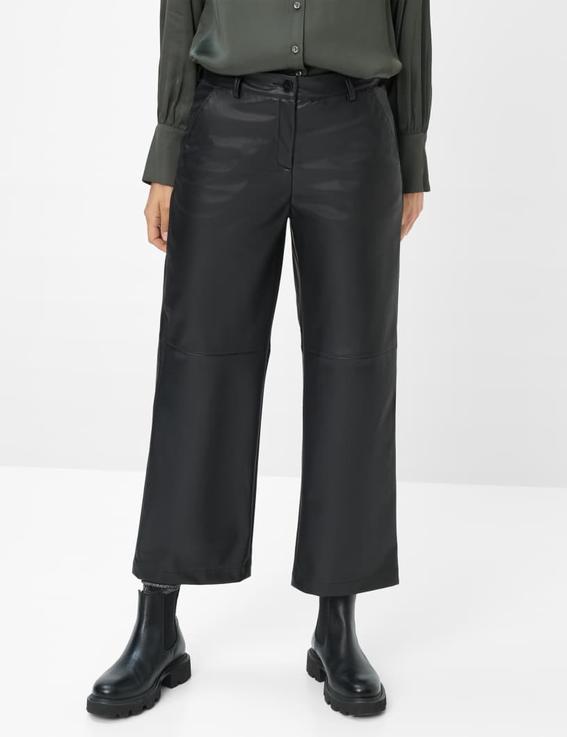 Ein modisches Highlight für die kühleren Tage: Die Culotte im STYLE MAINE S vereint trendsichere Eleganz mit einem Hauch von Coolness. Die feminine Damenhose besticht durch eine gerade, weite Form mit normaler Leibhöhe im Wide Leg, die durch die verkürzte Schrittlänge eine moderne, urbane Note erhält. Französische Taschen und Leistengesäßtaschen ergänzen das Design. Für Tragekomfort sorgt der teilelastische Dehnbund mit innenliegendem Gummiband. Dezente, aber wirkungsvolle Akzente setzen bei der smarten Hose typische Knienähte und eine Passe mit Abnähern. Perfekt umgesetzt in einer authentisch wirkenden Fake Leather-Qualität. Der innovative Polyester-Polyurethan-Mix überzeugt durch eine robuste und pflegeleichte Beschaffenheit sowie einer angenehm weichen Haptik. Edel und lässig zugleich - der Look dieser Hose wird durch die die feine Nappaleder-Optik bestimmt, die jedem Outfit das gewisse Etwas gibt. Ein unverzichtbares It-Piece für modebewusste Frauen.