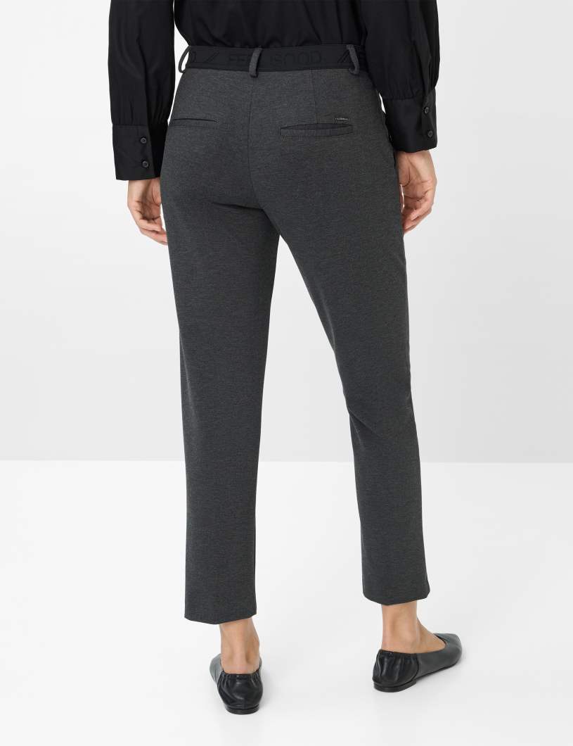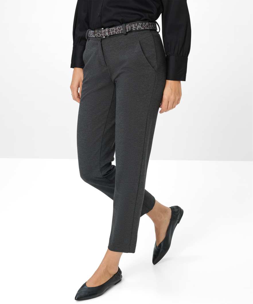 Mit der Chinohose im STYLE MARON S setzen Sie in der kühlen Herbst- und Wintersaison auf stilvolle Lässigkeit und feminine Eleganz. Diese 7/8-Hose überzeugt durch ihre moderne Passform und ist ein vielseitiger Begleiter für zahlreiche Anlässe. Der Regular Fit mit konischem Beinverlauf, normaler Leibhöhe und verkürzter Schrittlänge zaubert eine feminine Silhouette. Funktional und modern wird es am Bund. Der teilelastische Pull On-Dehnbund sieht nicht nur gut aus, sondern ist auch bequem. Französische Taschen, Leistengesäßtaschen und dezente Teilungsnähte runden das zeitlose Design der Damenhose stilvoll ab. Mit der Finest Jersey-Qualität vereint diese Chino das Beste aus Komfort und Stil. Der innovative Materialmix mit Viskose sorgt für eine geschmeidige Textur, während Polyamid und Elasthan Flexibilität und Langlebigkeit garantieren. Damit bietet die Hose nicht nur ein angenehmes Tragegefühl, sondern auch hervorragende Bewegungsfreiheit – ein echter Gewinn für Ihre Garderobe.