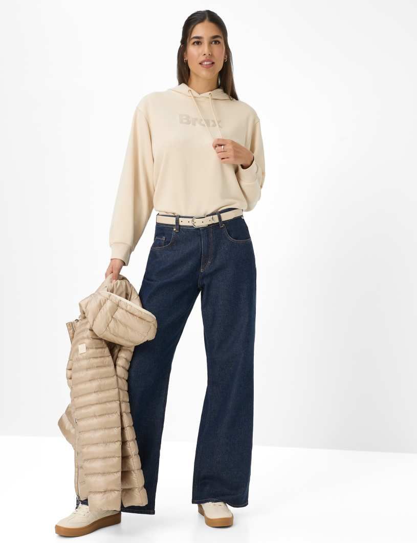 Ein Hauch von Lässigkeit trifft auf trendbewusstes Design – die Five-Pocket-Jeans im STYLE MORGAN ist die perfekte Begleitung für die kühleren Tage des Jahres. Mit einer weiten Form im Wide Leg verspricht die Damenhose eine moderne Silhouette, die zugleich Komfort und Stil vereint. Die normale Leibhöhe unterstreicht die feminine Passform, während die klassischen Elemente wie aufgesetzte Gesäßtaschen, eine Coinpocket und Einschubtaschen für eine zeitlose Ausstrahlung sorgen. Feine Stitching-Details setzen dezente Akzente und verleihen der Damenjeans zusätzlichen Charme. Diese Hose überzeugt in einem authentischem Denim aus Baumwolle, Lyocell und Elasthan, der für eine besonders weiche Haptik und optimale Bewegungsfreiheit sorgt. Dank der hochwertigen Materialkombination bleibt die Hose formstabil und bietet gleichzeitig ein angenehmes Tragegefühl - ob für entspannte Stunden oder stilvolle Auftritte. Farbe