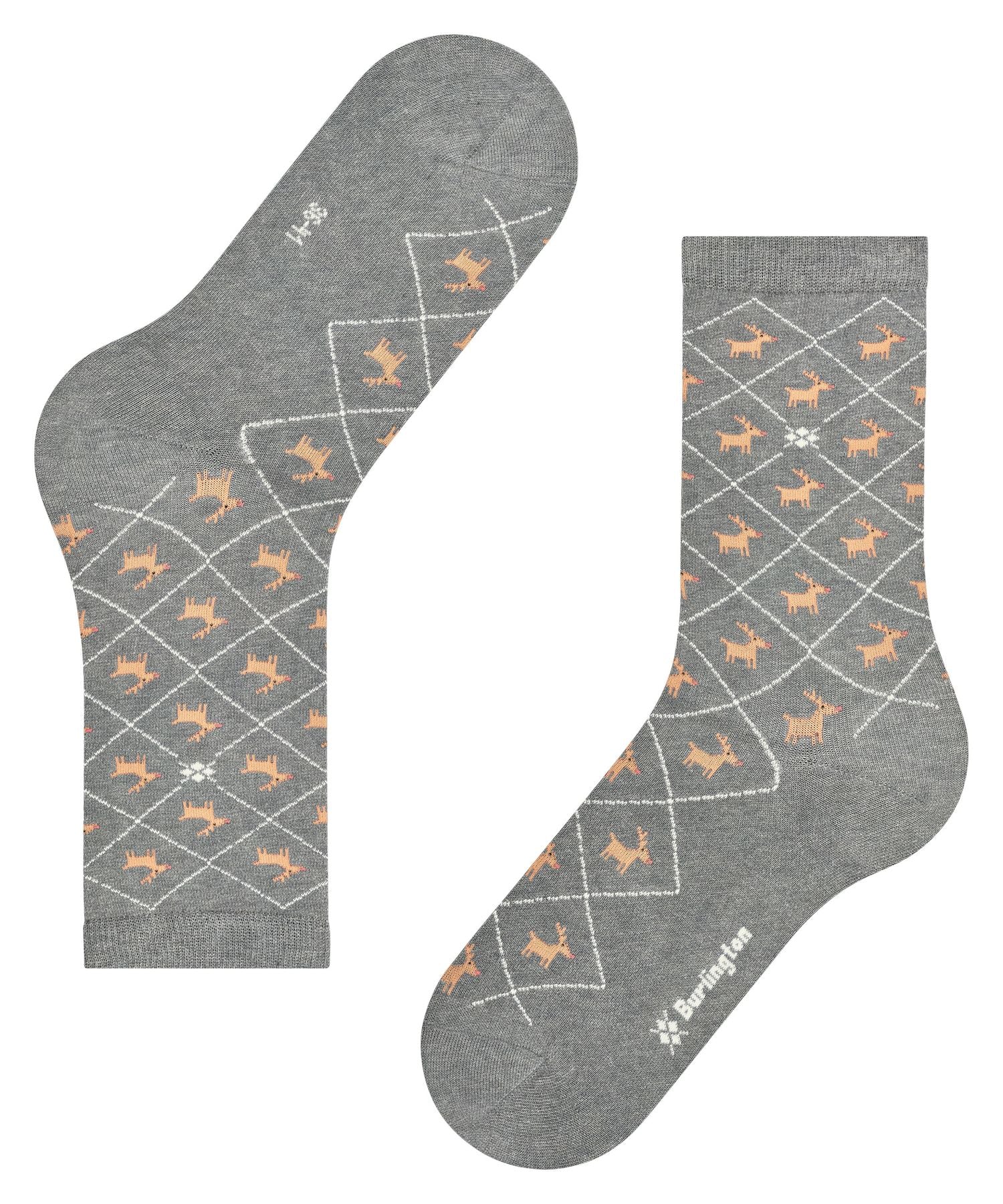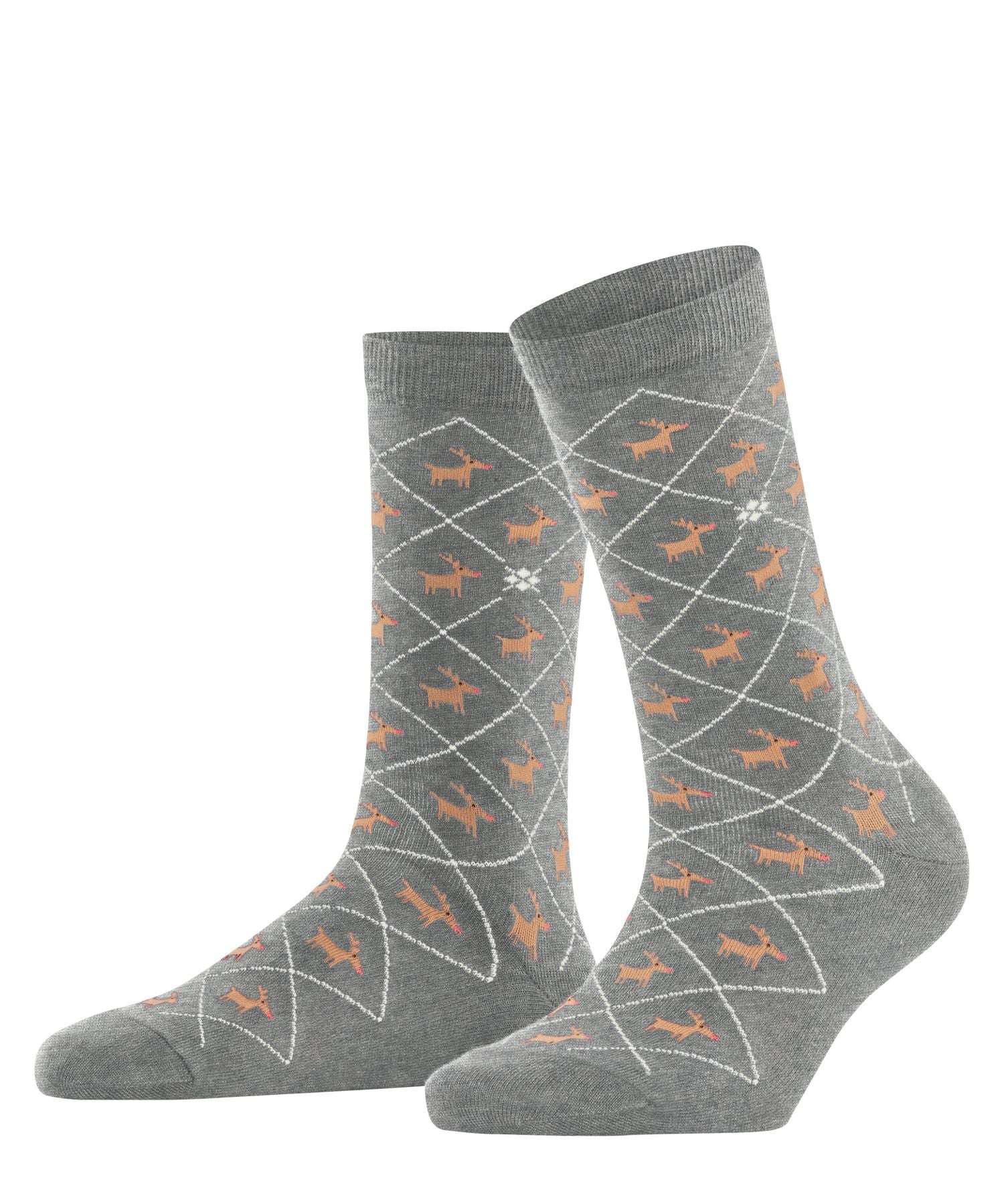 Diese Strümpfe vereinen das revisited Argyle-Design auf verspielte Weise mit einem Muster aus rotnasigen Rentieren. Mit ihrer Rudolph-Hommage sind sie die perfekten Begleiter für jeden weihnachtlichen casual Look oder verleihen einem edlen Festtagsoutfit eine zusätzliche Portion Charme.
