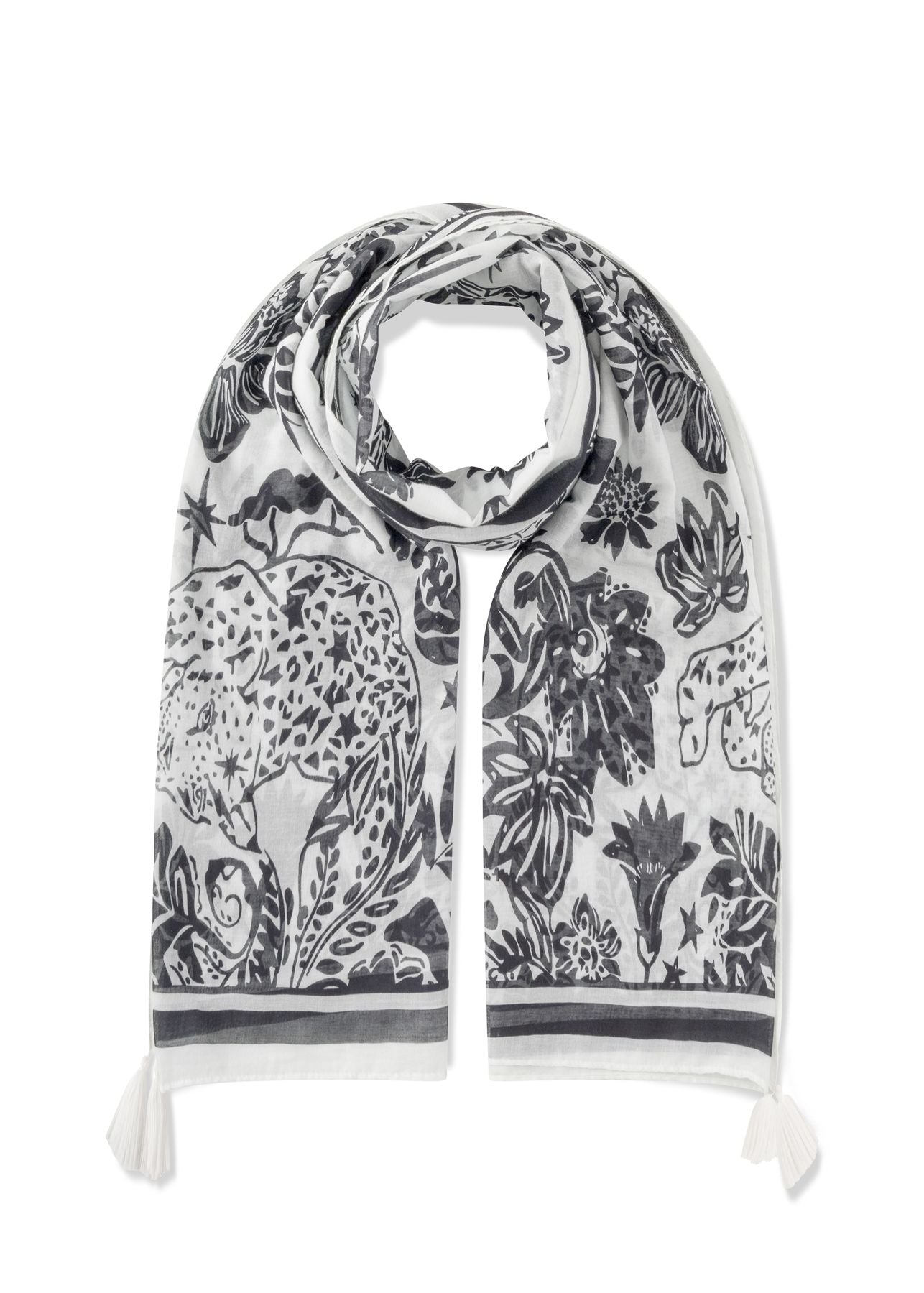 Schal aus reiner Baumwolle mit Dschungel-Motiven – Modehaus Schlier