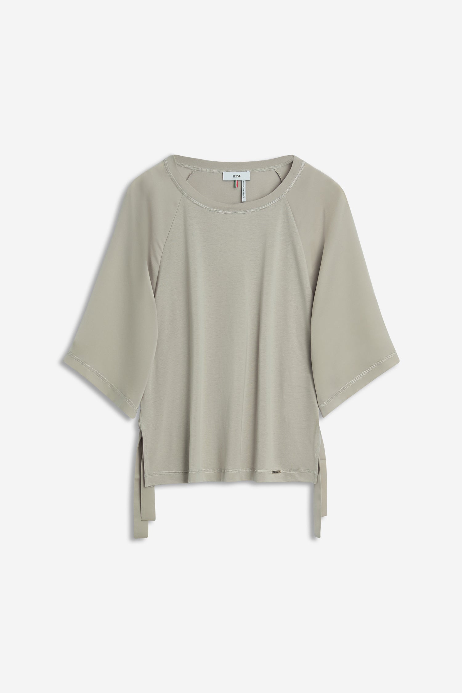Lässig und feminin zugleich: Das weiße T-Shirt mit Rundhals-Ausschnitt und überschnittenen Ärmeln überzeugt mit einem besonderen Bindedetail an den Seiten. Die lockere Passform und der raffinierte Schnitt machen es zum idealen Begleiter für entspannte Alltags-Looks.