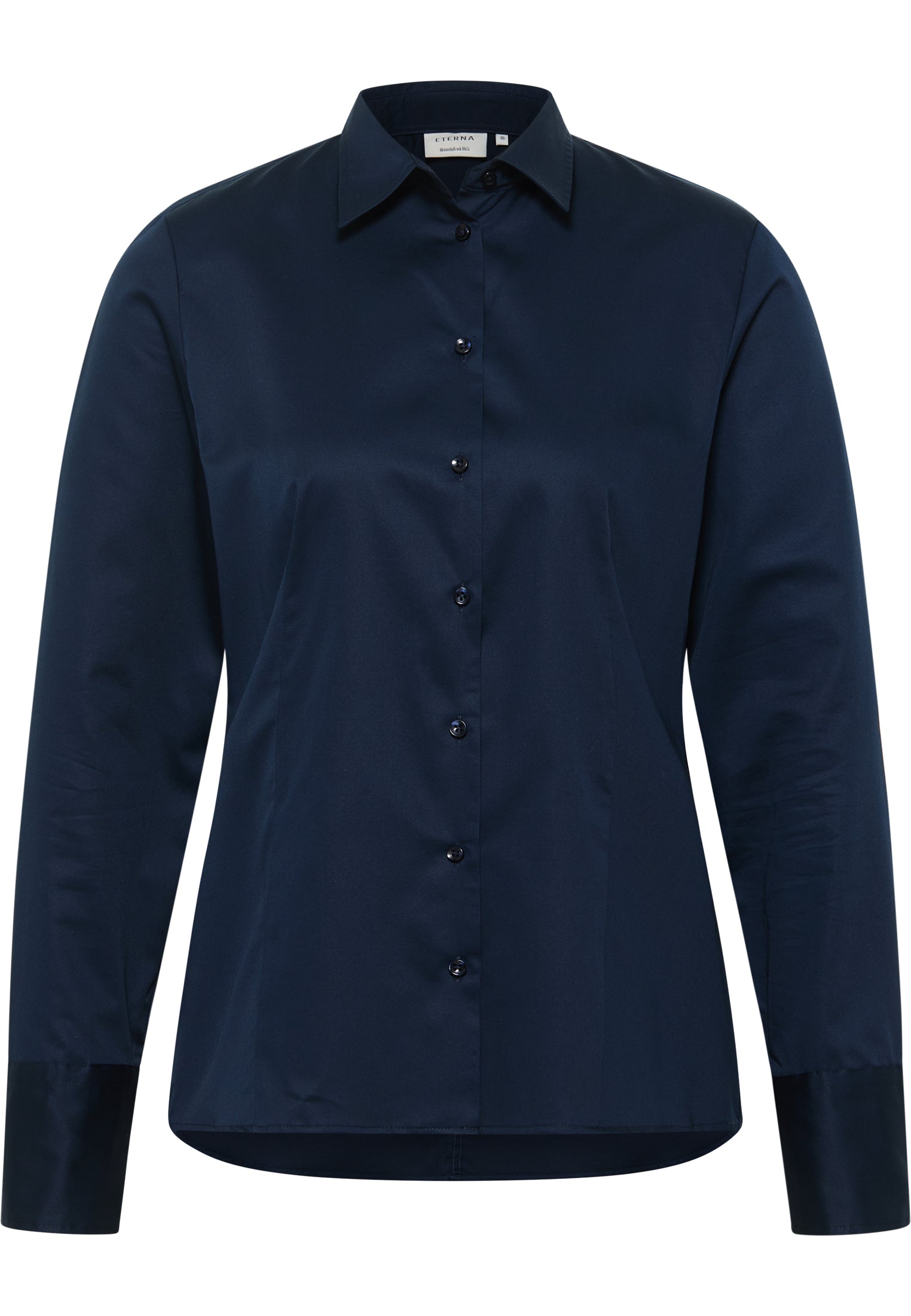 Der Hemdkragen und die feine Baumwollqualität mit weichem Griff (95% Baumwolle, 5% Elasthan, Satingewebe), machen diese Bluse mit einer Rückenlänge von 66 cm zu einem absoluten Must-have für feminine Businesslook und stilvolle Momente.