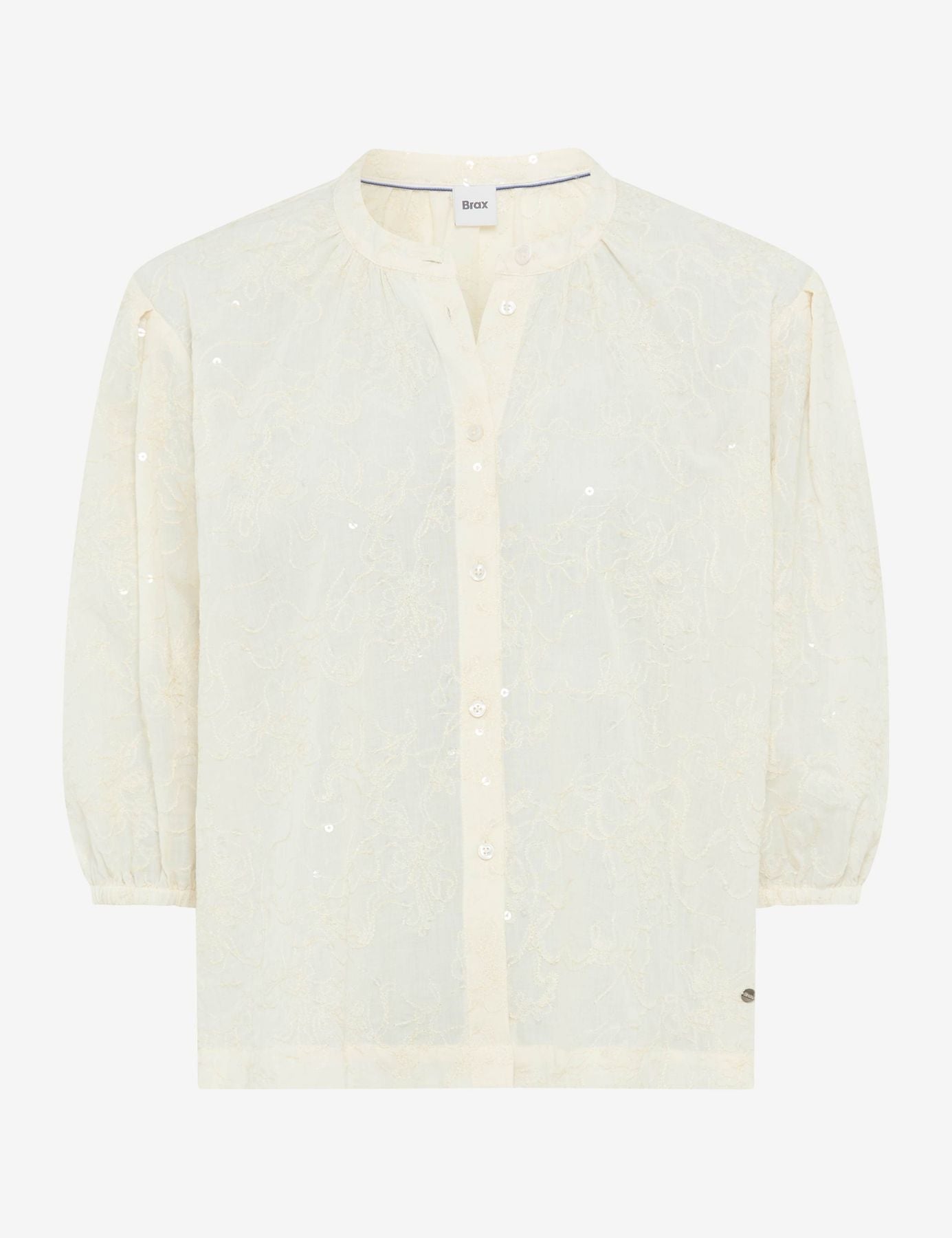 Statement-Piece par excellence: Die Bluse im Style VIV setzt als feminines Highlight modische Akzente. Die locker ausgestellte Silhouette mit kleinen Saumschlitzen wird durch einen V-Neck und durchgehender Knopfleiste ergänzt. Für mehr Volumen sorgen die mit Falten eingesetzten 3/4-Ärmel. Besonders ins Auge fällt der tonale Blumenstick, der durch feine Pailletten veredelt wird. Liebevolle Details wie Raffungen am Kragen und Ärmelbündchen runden den Look gekonnt ab. Dieser detailreiche Style wird durch einen soften Baumwollmix unterstützt, der die hautsympathischen und atmungsaktiven Eigenschaften der Naturfaser mit der Formbeständigkeit und Pflegeleichtigkeit der Kunstfaser für einen hohen Tragekomfort verbindet.