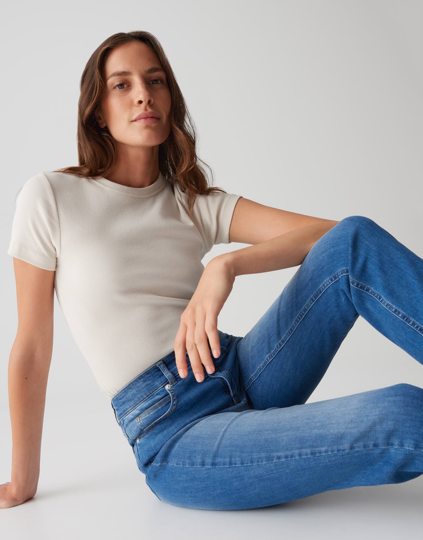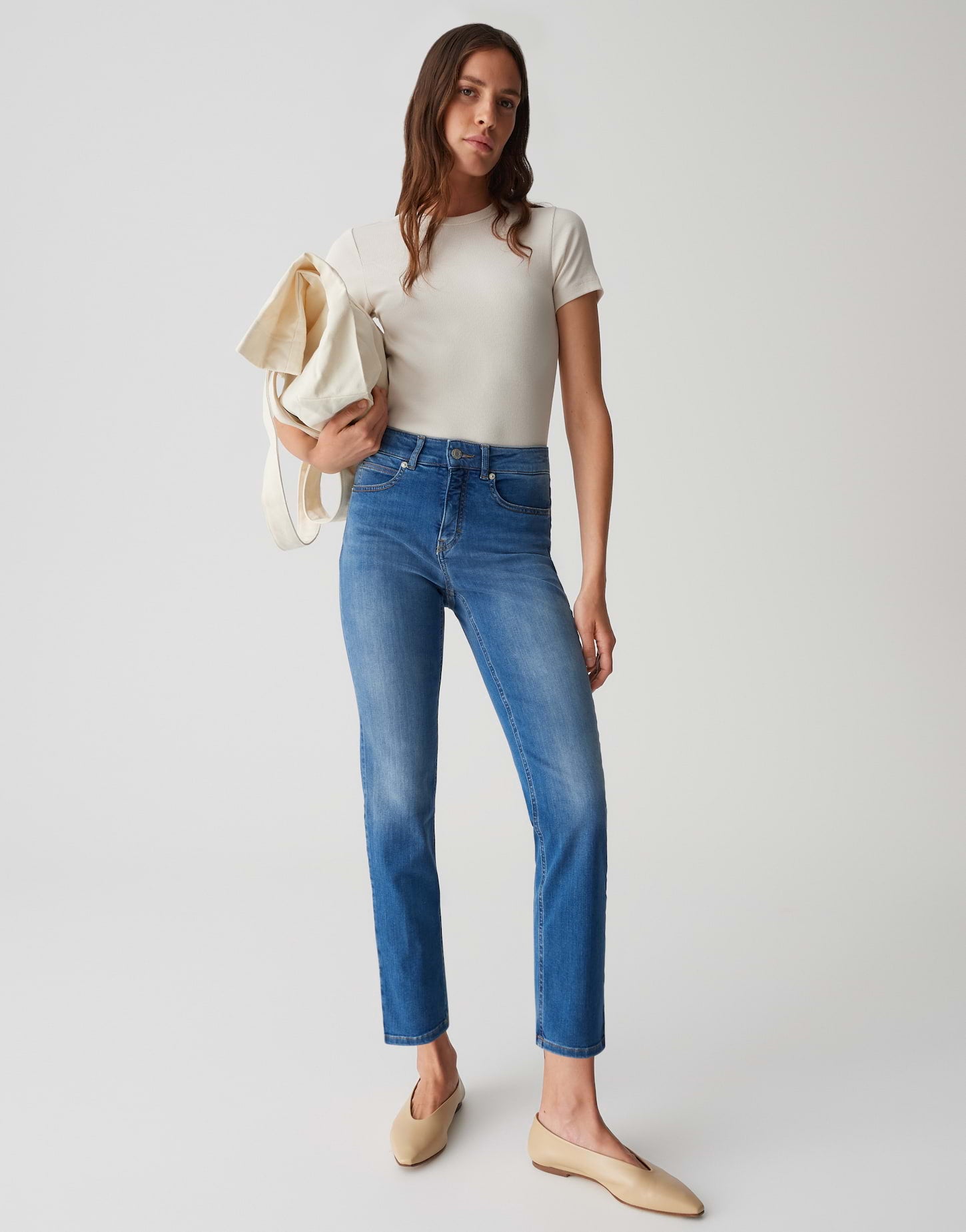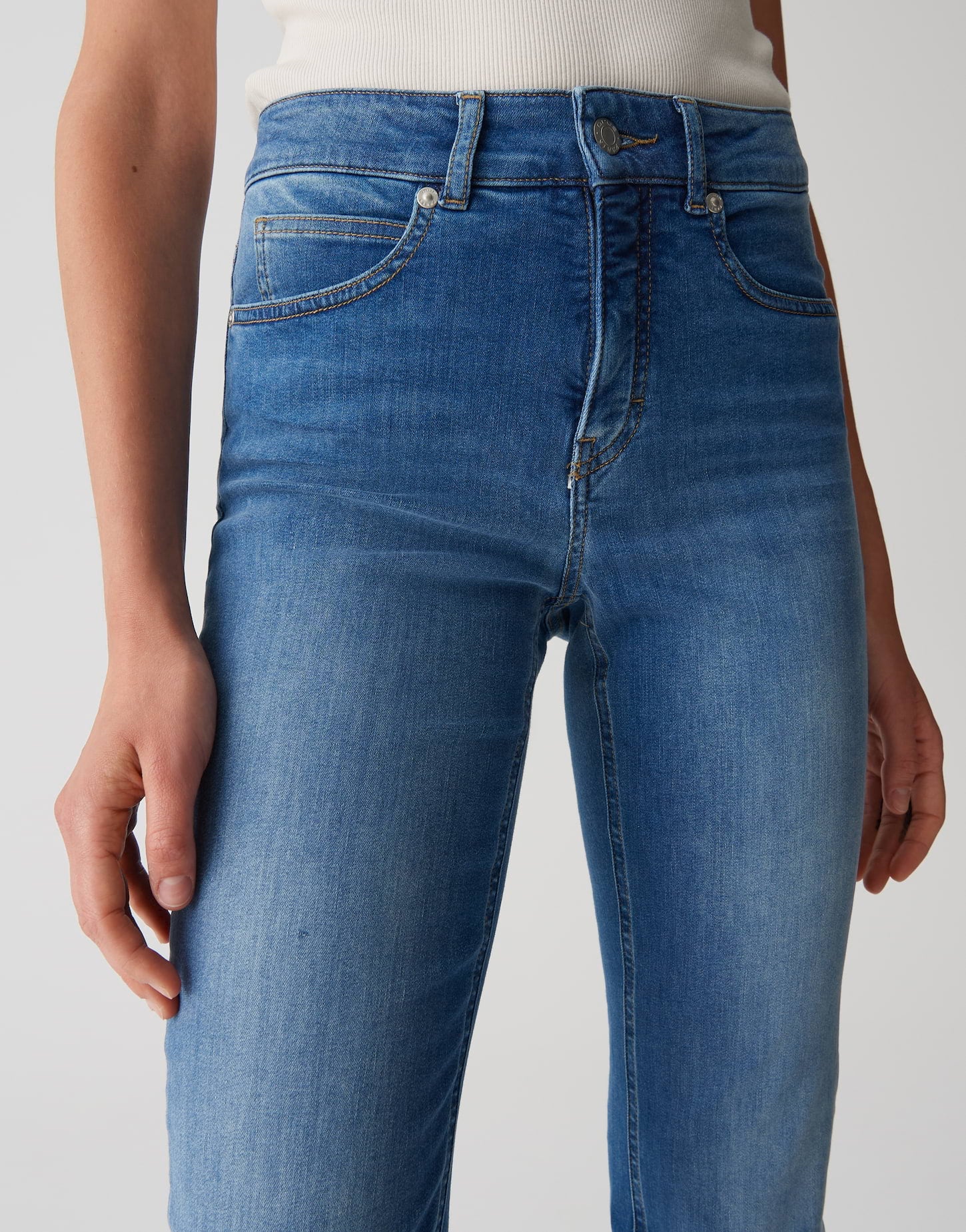schmal am Oberschenkel, gerader Beinverlauf, Model Größe 178 cm – trägt Größe 36, Hosenbein Innenlänge in jeder Größe: L28 ca. 71 cm | L30 ca. 76 cm | L32 ca. 81 cm, Denim, weicher Griff, 5-Pocket-Design, Zip-Fly, leichte Used-Effekte
