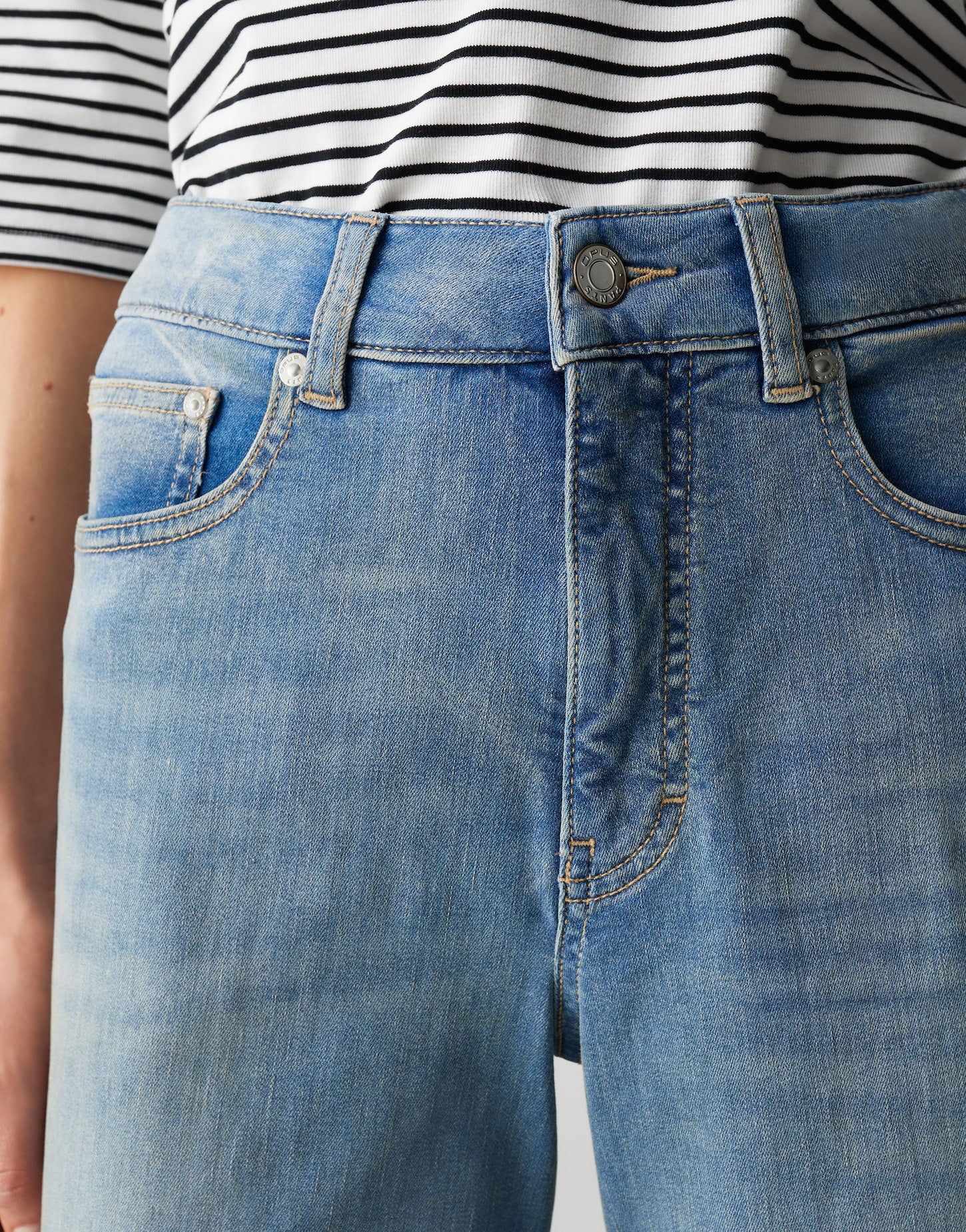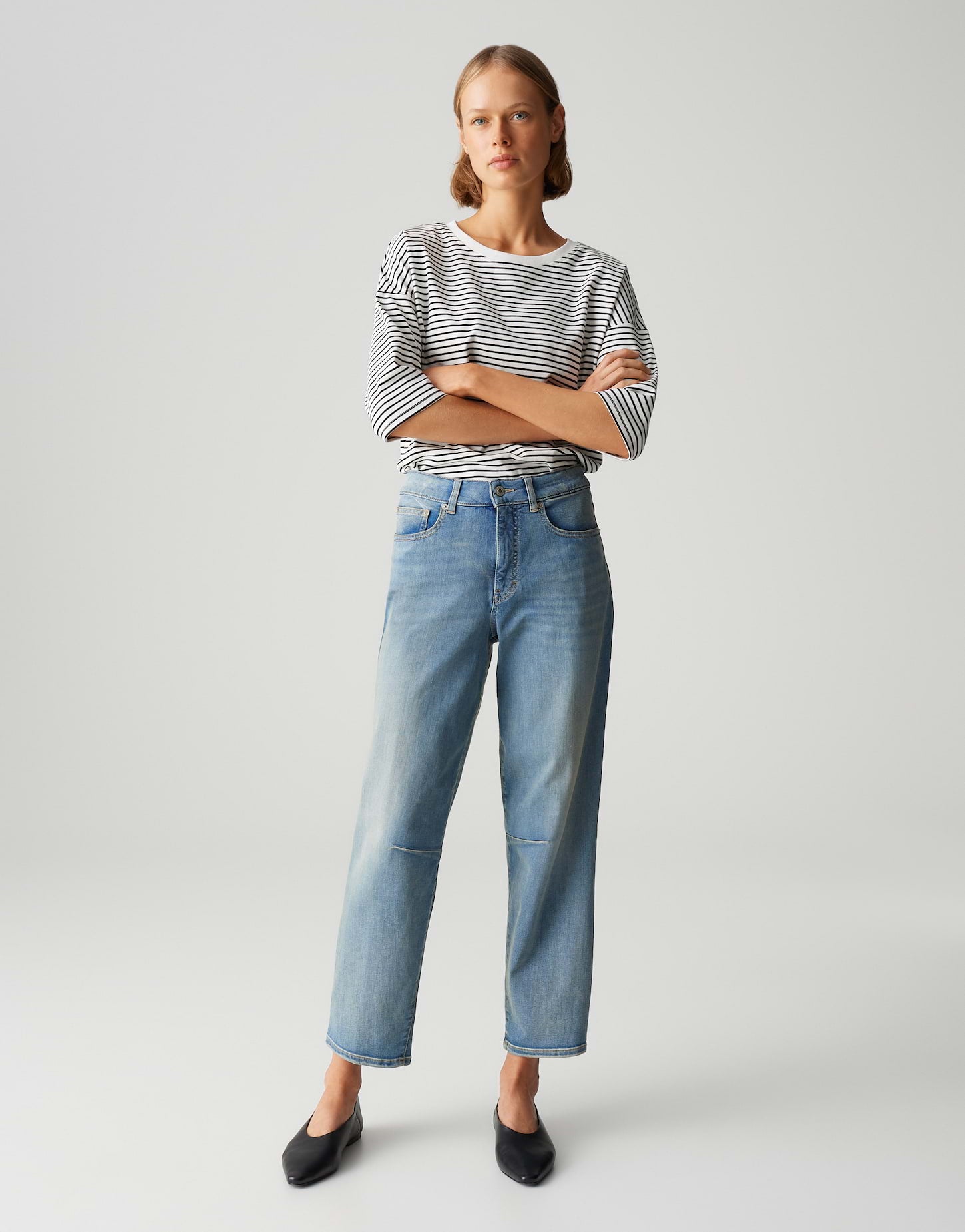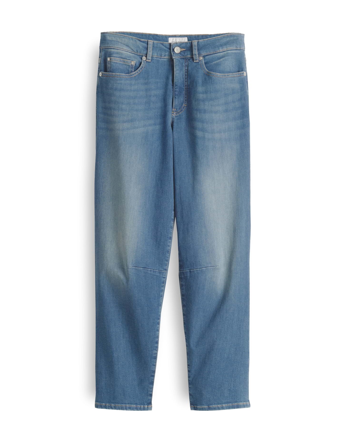 weit am Oberschenkel, ovales Bein, Hosenbein Innenlänge ca. 70 cm in jeder Größe, Model Größe 178 cm – trägt Größe 36, Denim, weicher Griff, authentische Waschung, 5-Pocket-Design, Zip-Fly, leichte Used-Effekte, Crinkle-Effekte