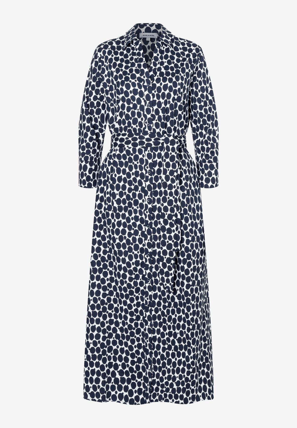 Mit dem maxilangen Hemdblusenkleid von MORE & MORE sind Sie für viele Gelegenheiten perfekt gestylt. Der 2-farbige Tupfenprint in marine/ecru sorgt für eine moderne Optik, während der lockere Shape und das elastische Baumwollmaterial für einen angenehmen Tragekomfort sorgen. Stylen Sie ja nach Anlass Ballerinas, Sneaker oder Heels dazu - fertig ist ein stilvoller Casual-Look. Farbe