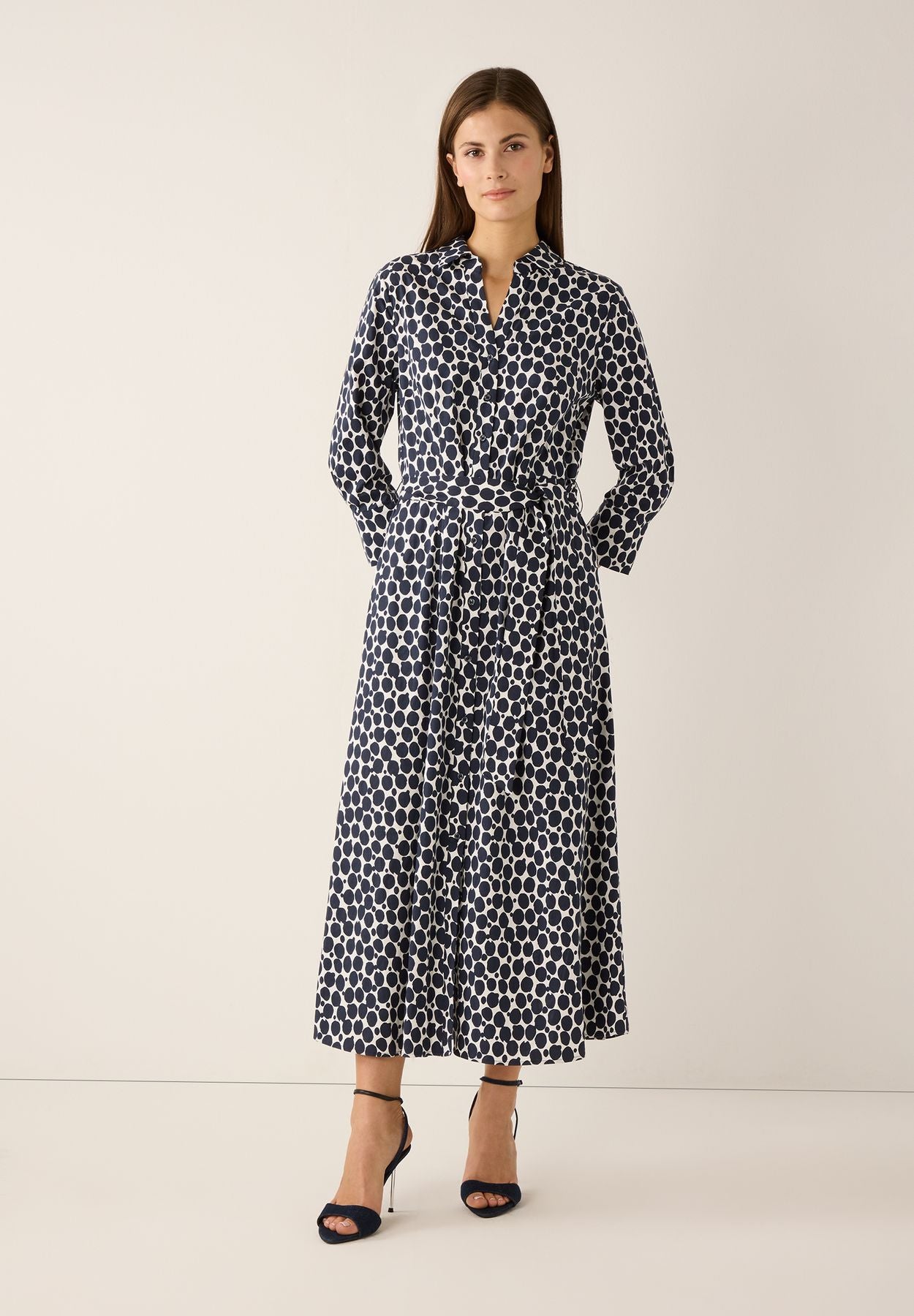 langes Hemdblusenkleid mit Tupfenprint – Modehaus Schlier