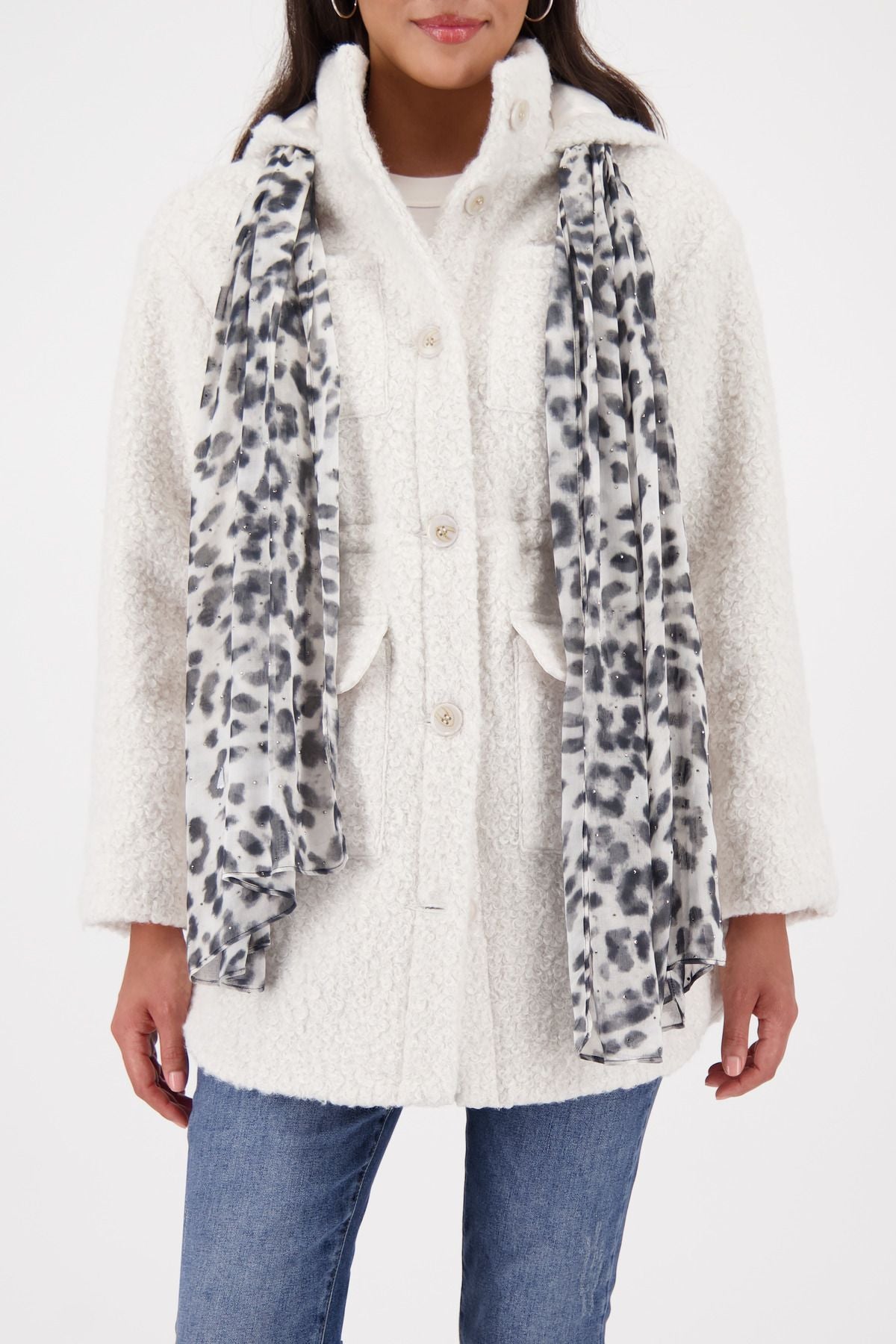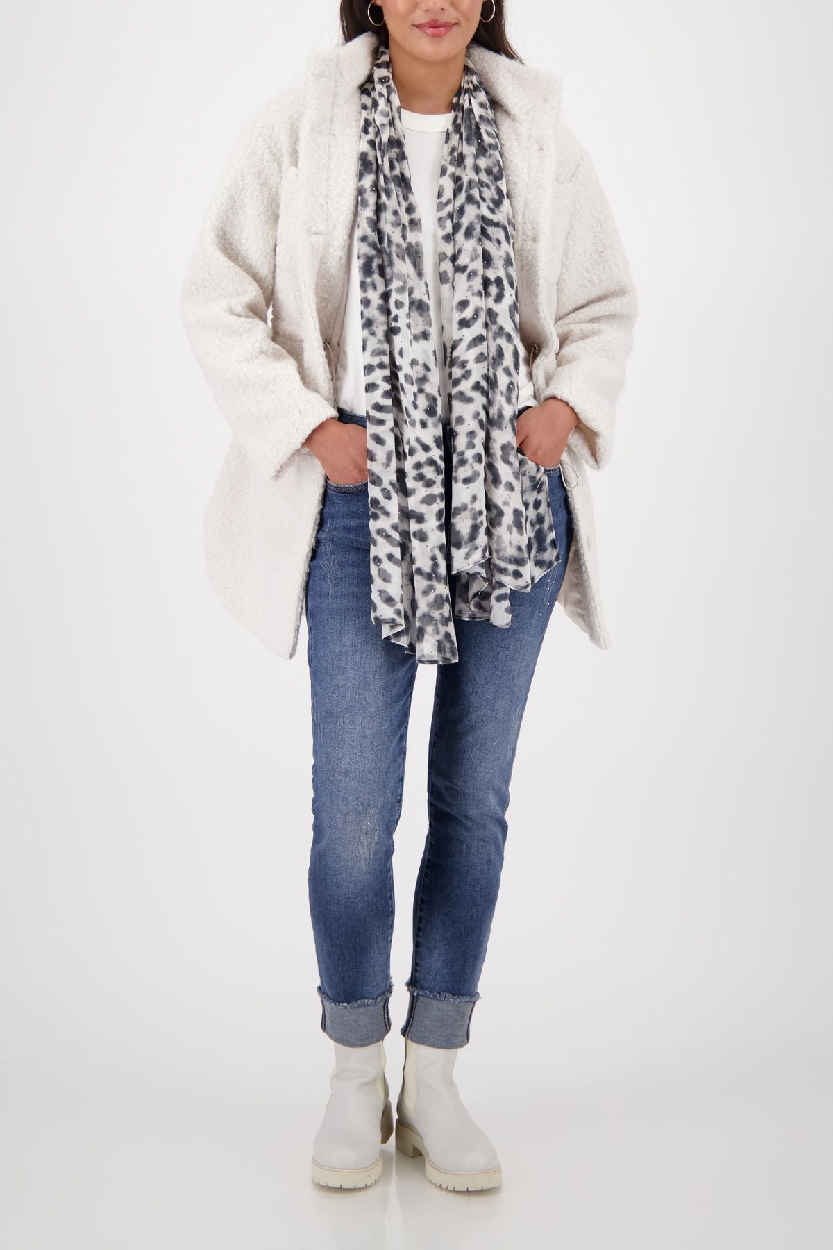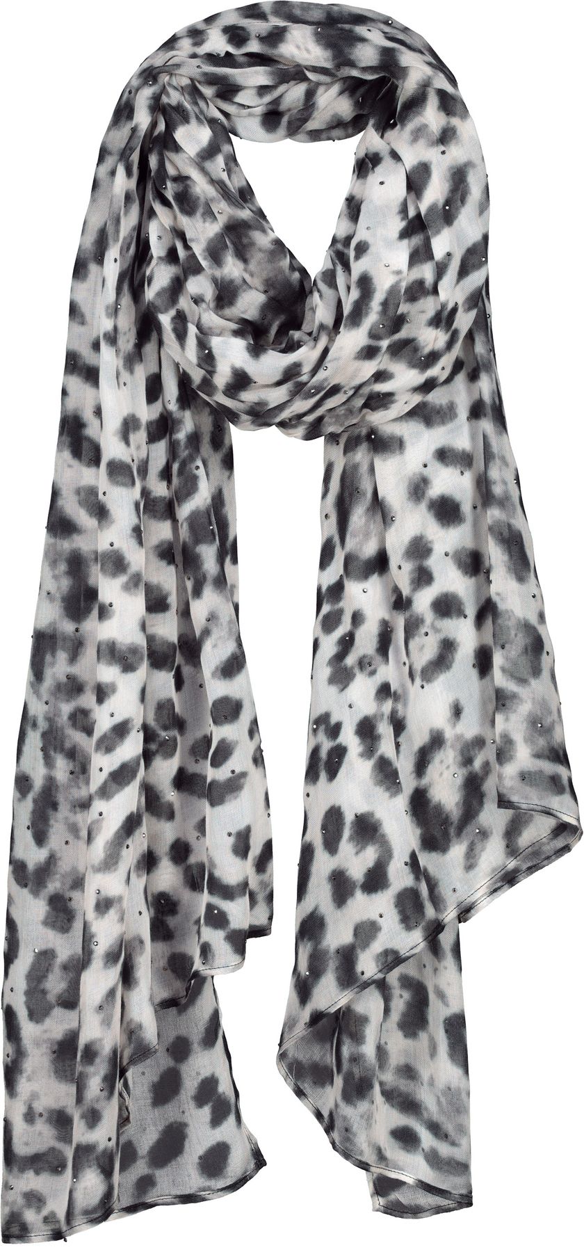 Dieses modische Tuch aus fließender Viskose überzeugt mit einem ausdrucksstarken Allover-Leo-Muster mit Strasssteinen. Die rechteckige Form ermöglicht vielseitige Styling-Varianten – ob lässig um den Hals, als Haarband oder dekoratives Accessoire. Der weiche Stoff trägt sich angenehm leicht und verleiht jedem Outfit das gewisse Etwas.