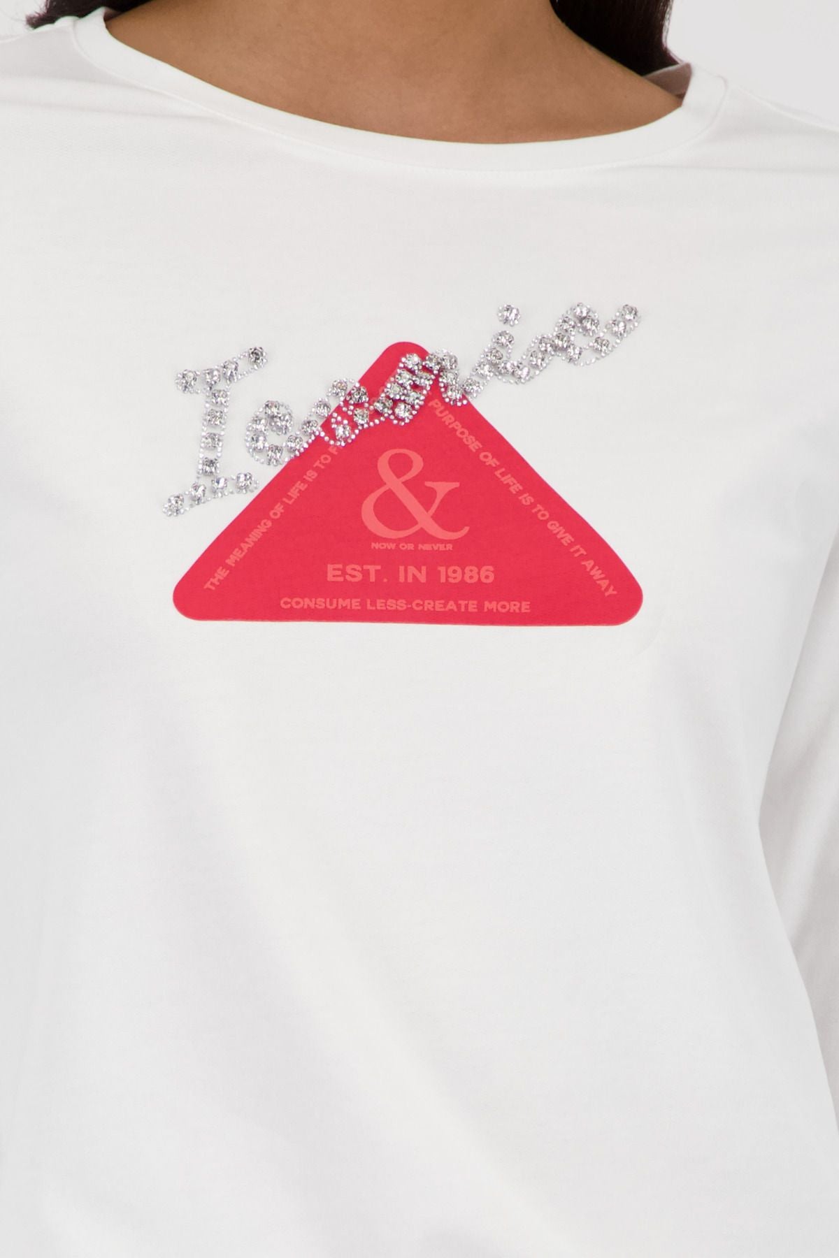 Elegantes Langarmshirt aus einer hochwertigen Baumwolle mit Modal, veredelt durch ein strahlendes Emblem mit Strasssteinen. Der perfekte Begleiter.
