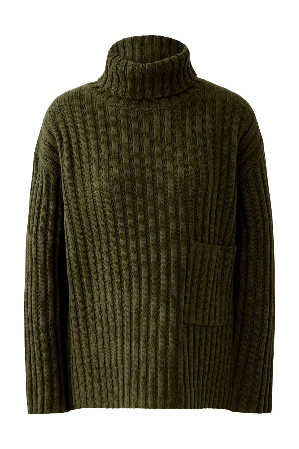 Eine große aufgesetzte Tasche, ein hoher Schlitz in der Seitennaht
