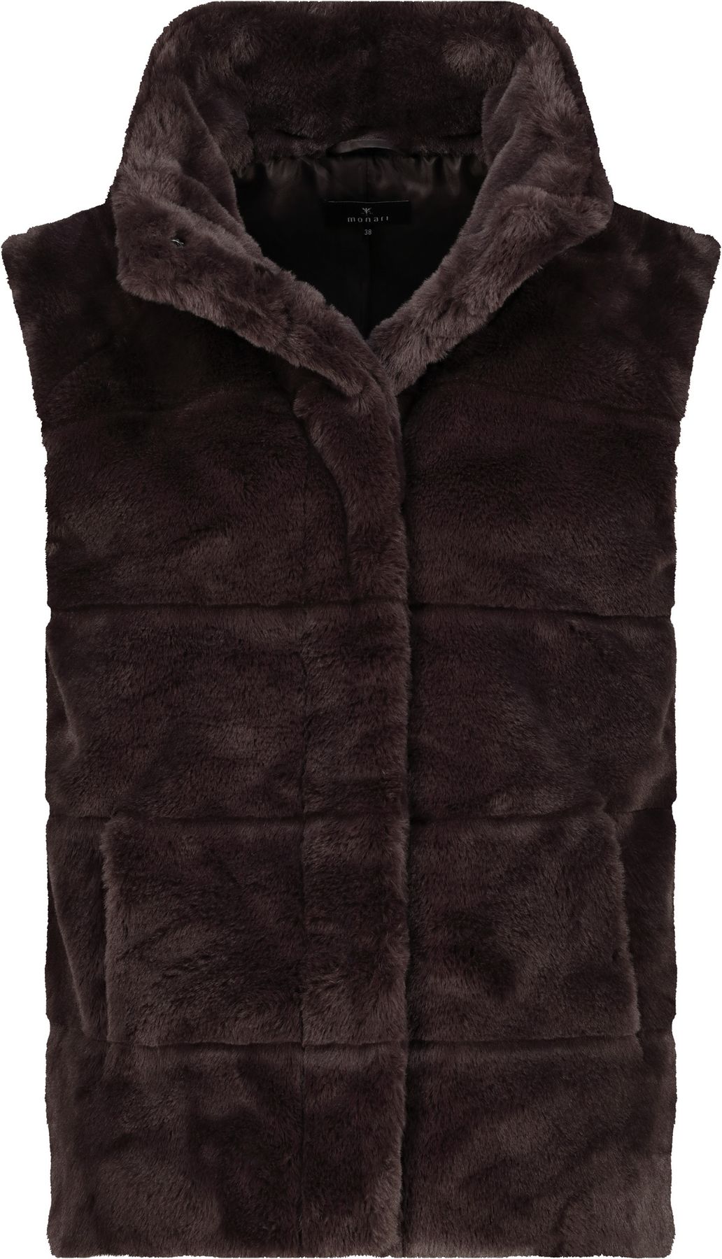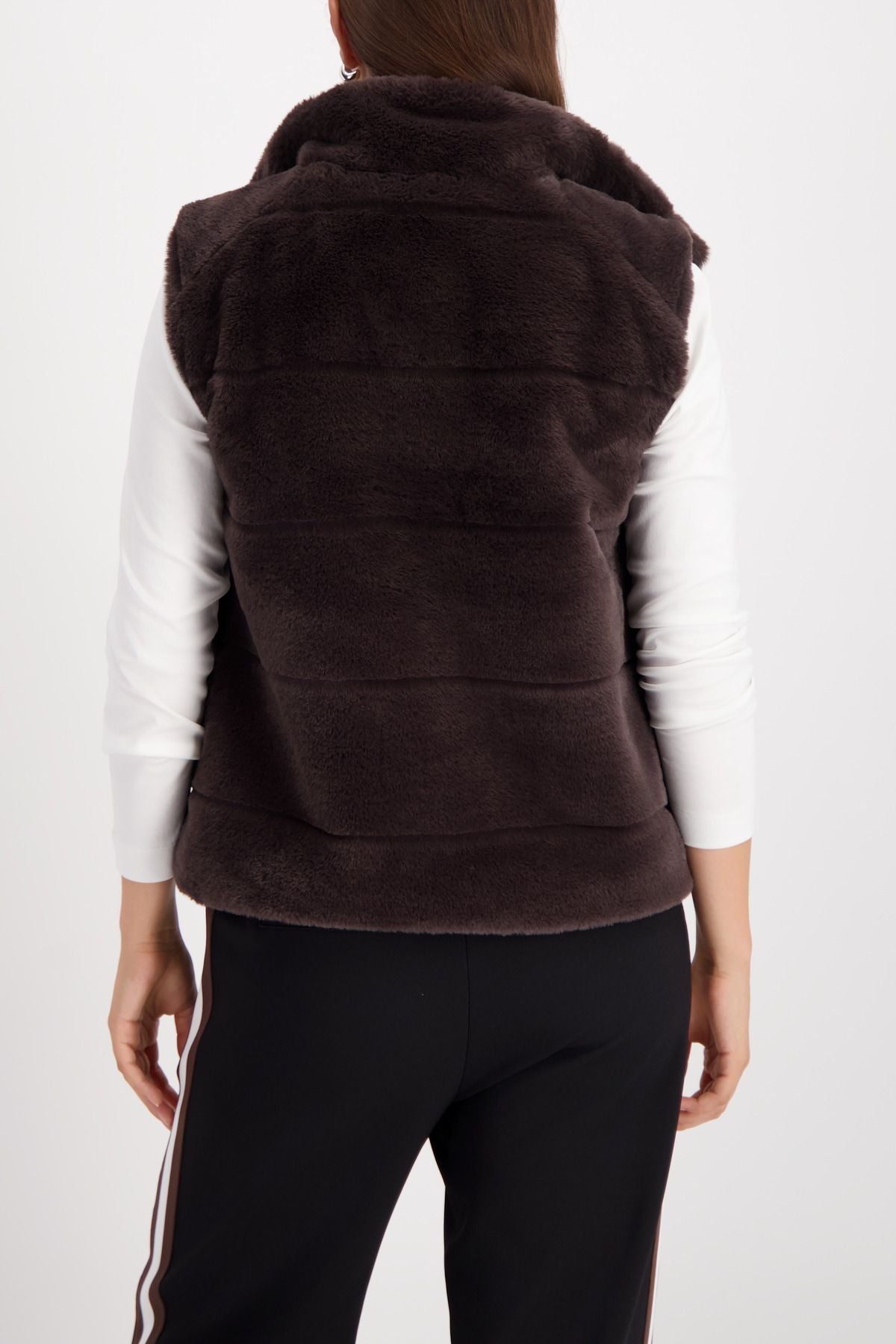 Eine flauschige Weste mit Stehkragen und seitlichen Eingrifftaschen. Farbe
