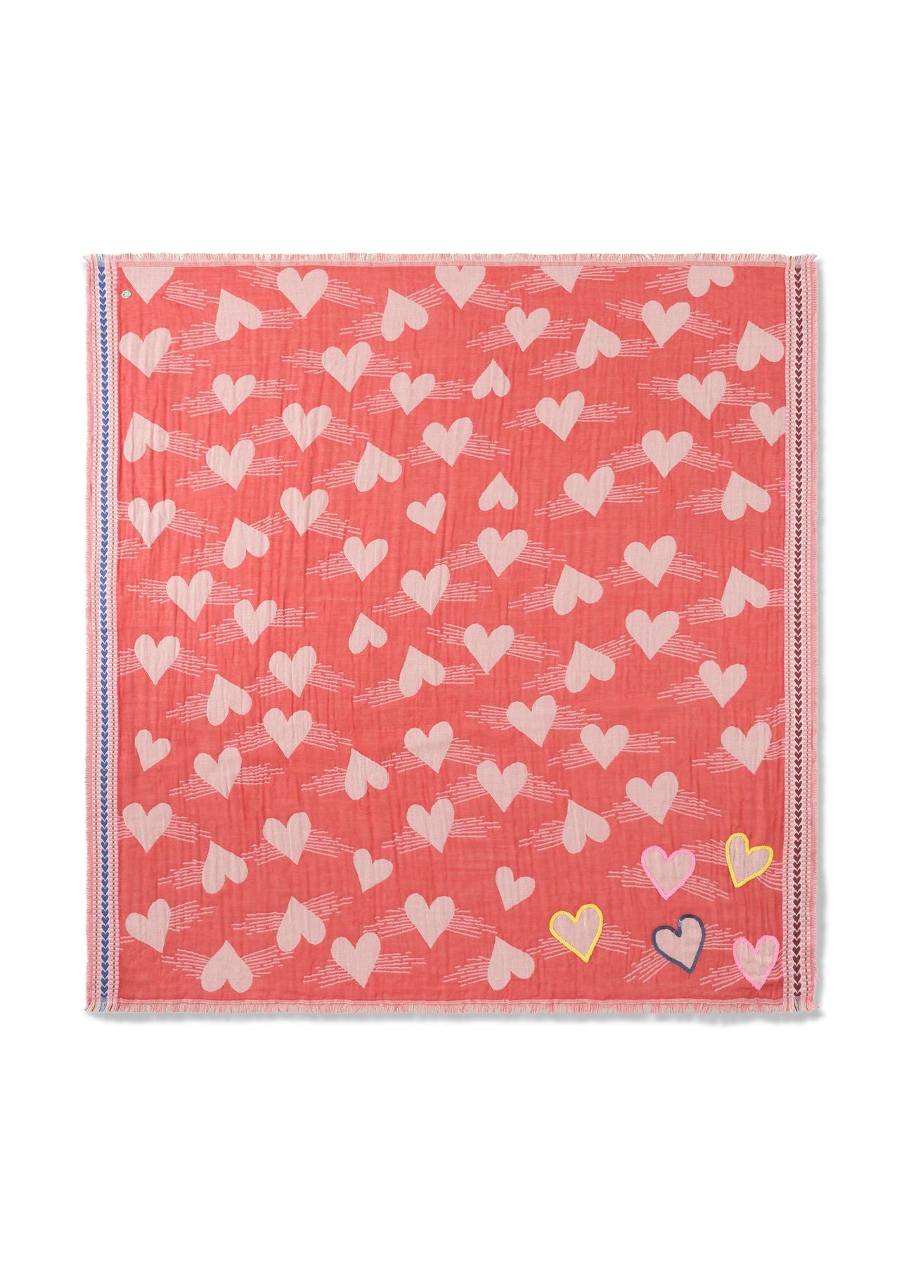 Jacquard-Tuch aus Baumwollmischung mit Herzmuster und Stickerei