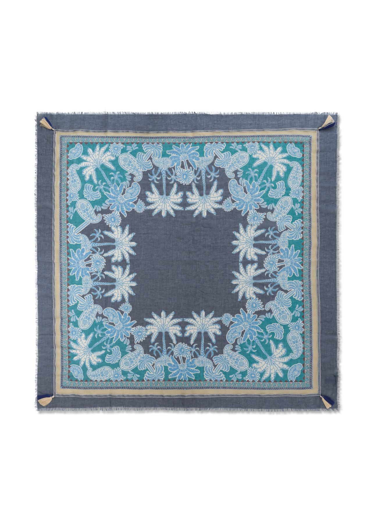 Tuch aus Baumwollmischung mit Palmenmotiven und Quasten