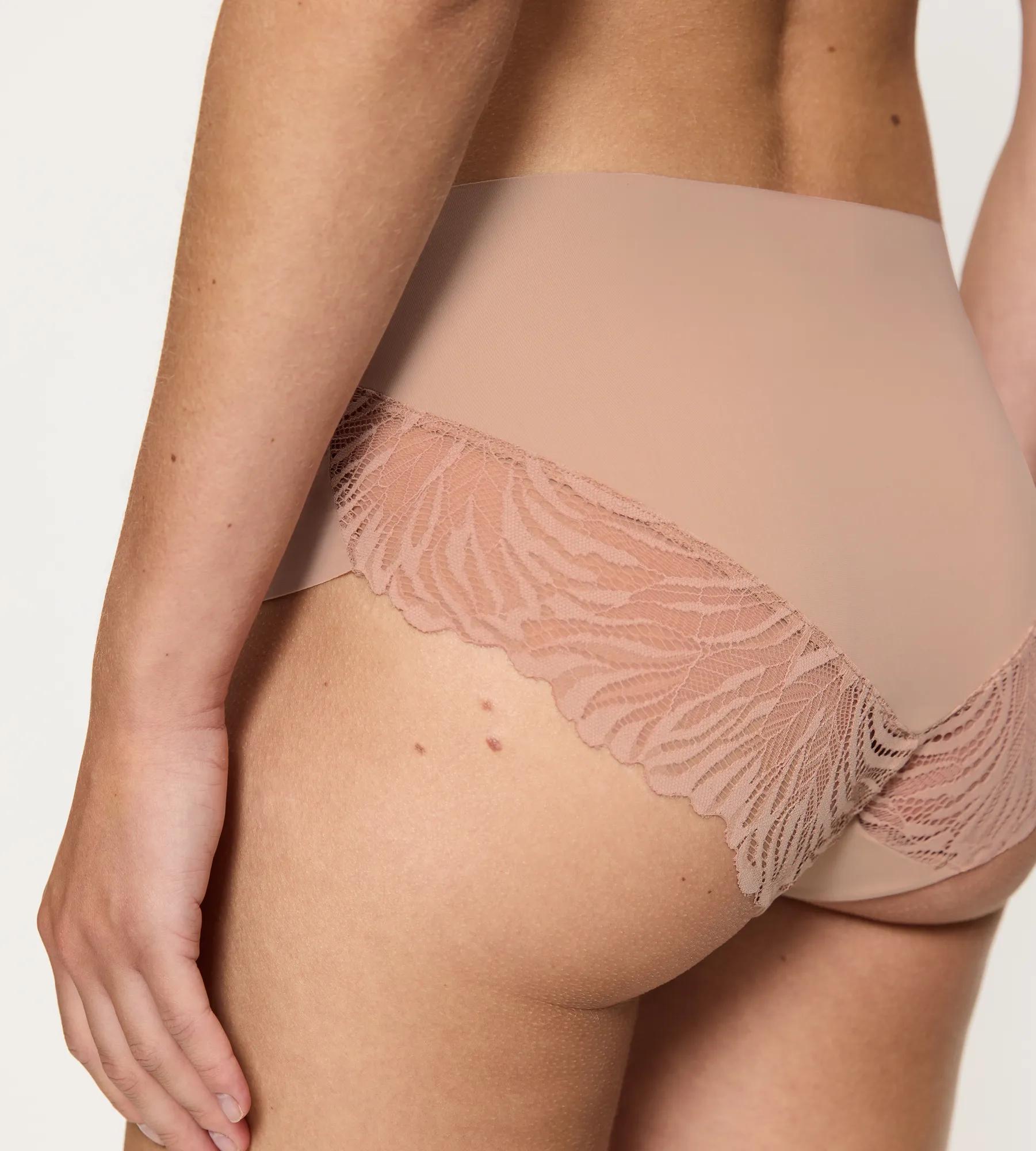 Dieser String mit geringer Abdeckung kombiniert Komfort und Bewegungsfreiheit. Die Vorderseite besteht aus Mikrofaser, die Rückseite aus femininer Bio-Spitze. GRS-zertifiziert.