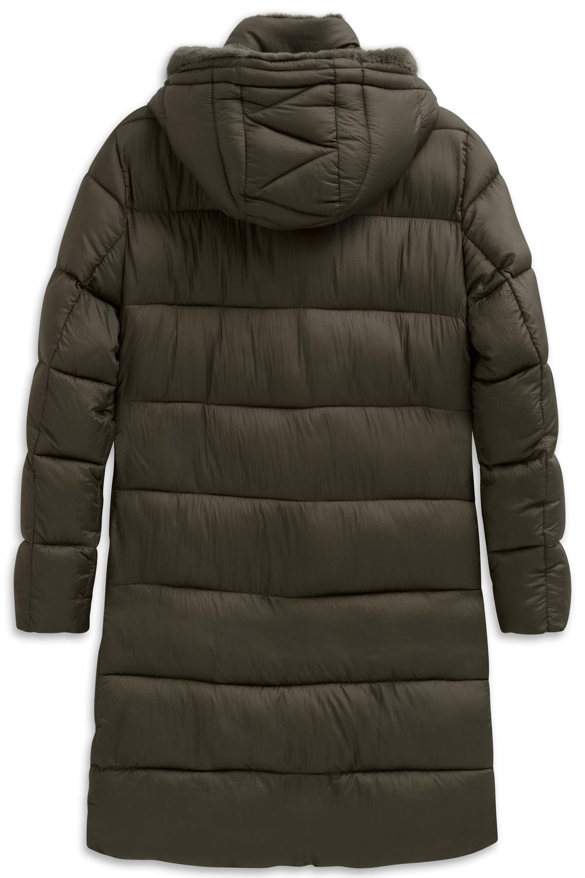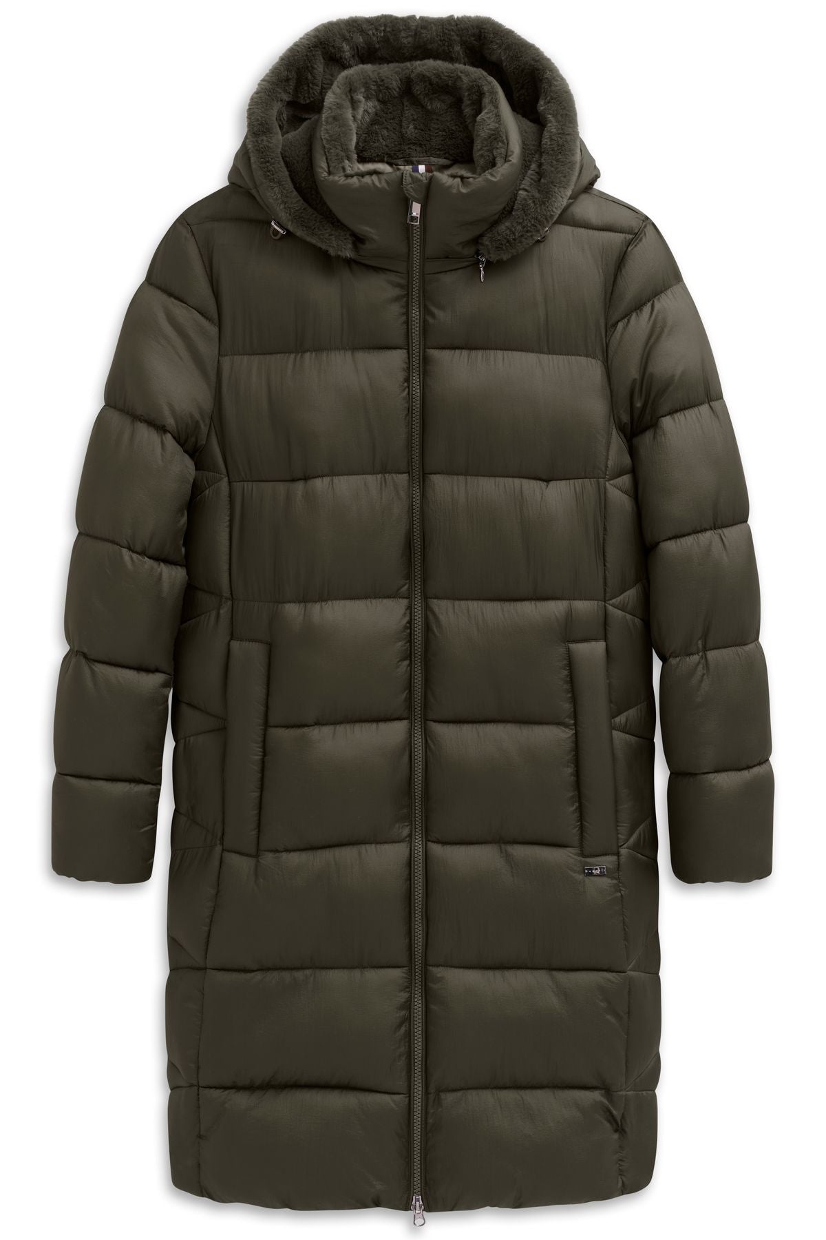 Taillierte Steppjacke mit anschmiegsamen, innenliegendem Kunstfellkragen und abnehmbarer Kapuze. Für eine ideale Wärmeisolation sorgt die Sorona Füllung, eine auf nachwachsenden Rohstoff basierende Füllfaser. Die bugatti Flag setzt farbliche Akzente im Innenleben.