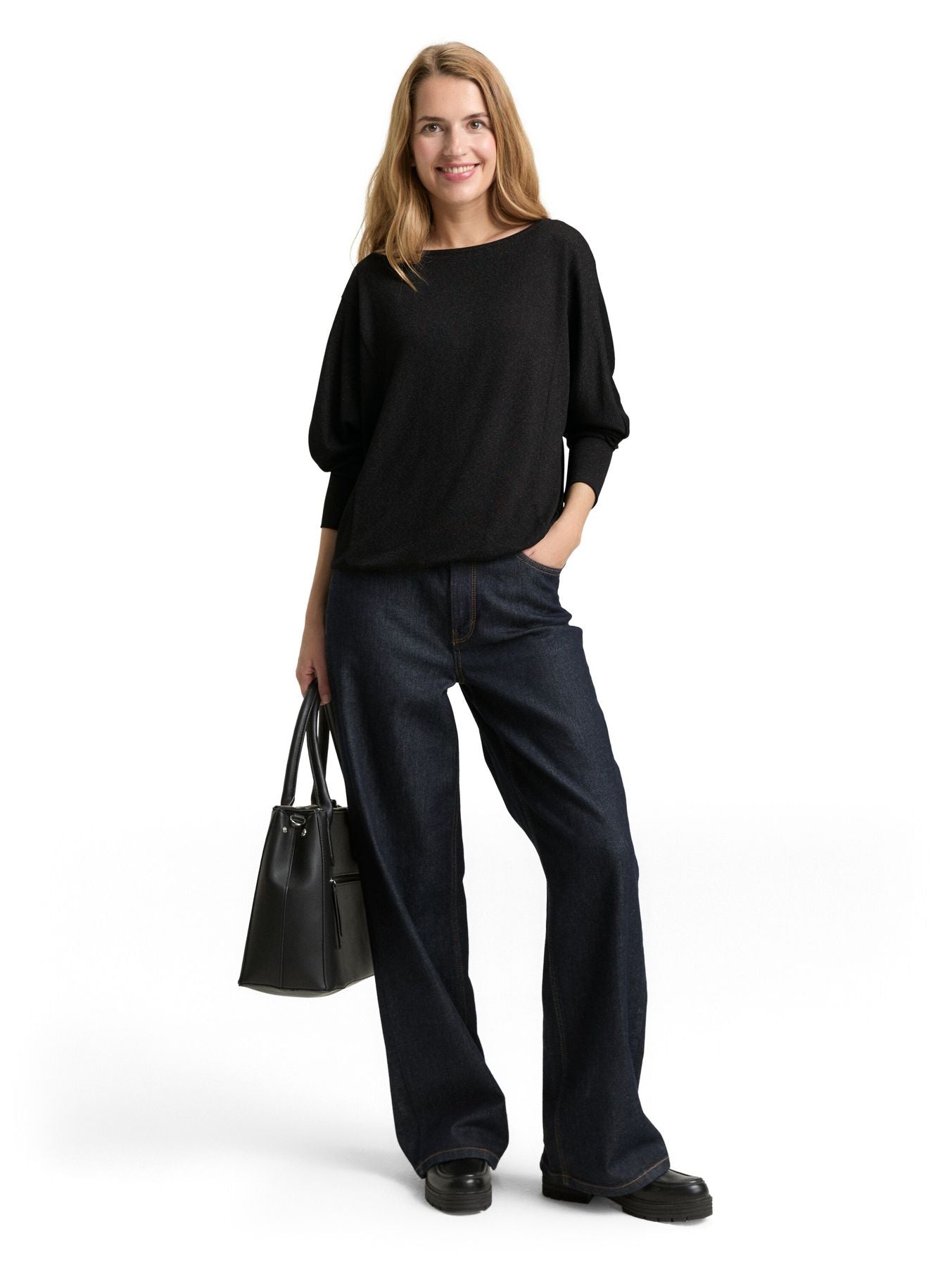 Locker geschnittenes Longsleeve mit Glitzer-Effekt und Fledermausärmeln. Aus einem fließenden Single-Jersey-Stoff mit leichtem Stretch-Anteil.