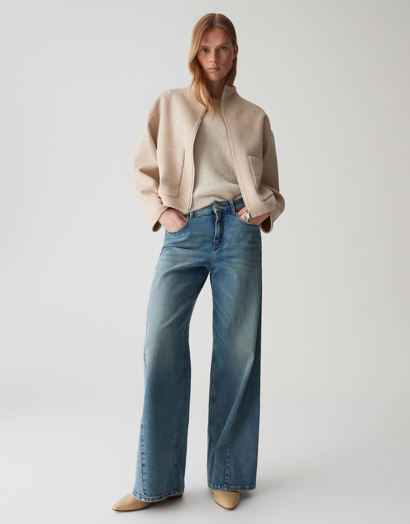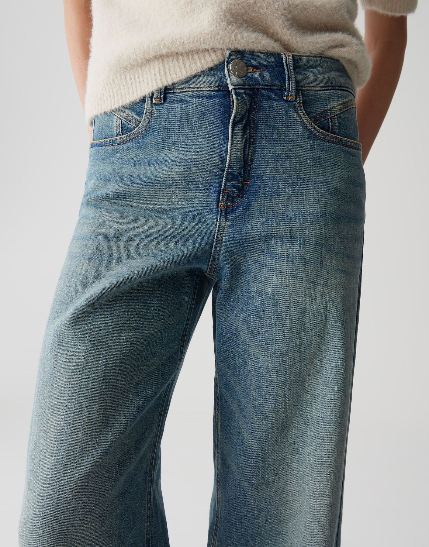 weit am Oberschenkel, sehr weiter Beinverlauf, Hosenbein Innenlänge in jeder Größe: L32 ca. 82 cm, Model Größe 178 cm – trägt Größe 36, Denim, weicher Griff, authentische Waschung, Eingrifftaschen vorne, aufgesetzte Taschen hinten, verdeckter Zip-Fly, leichte Used-Effekte, dezente Crinkle-Effekte