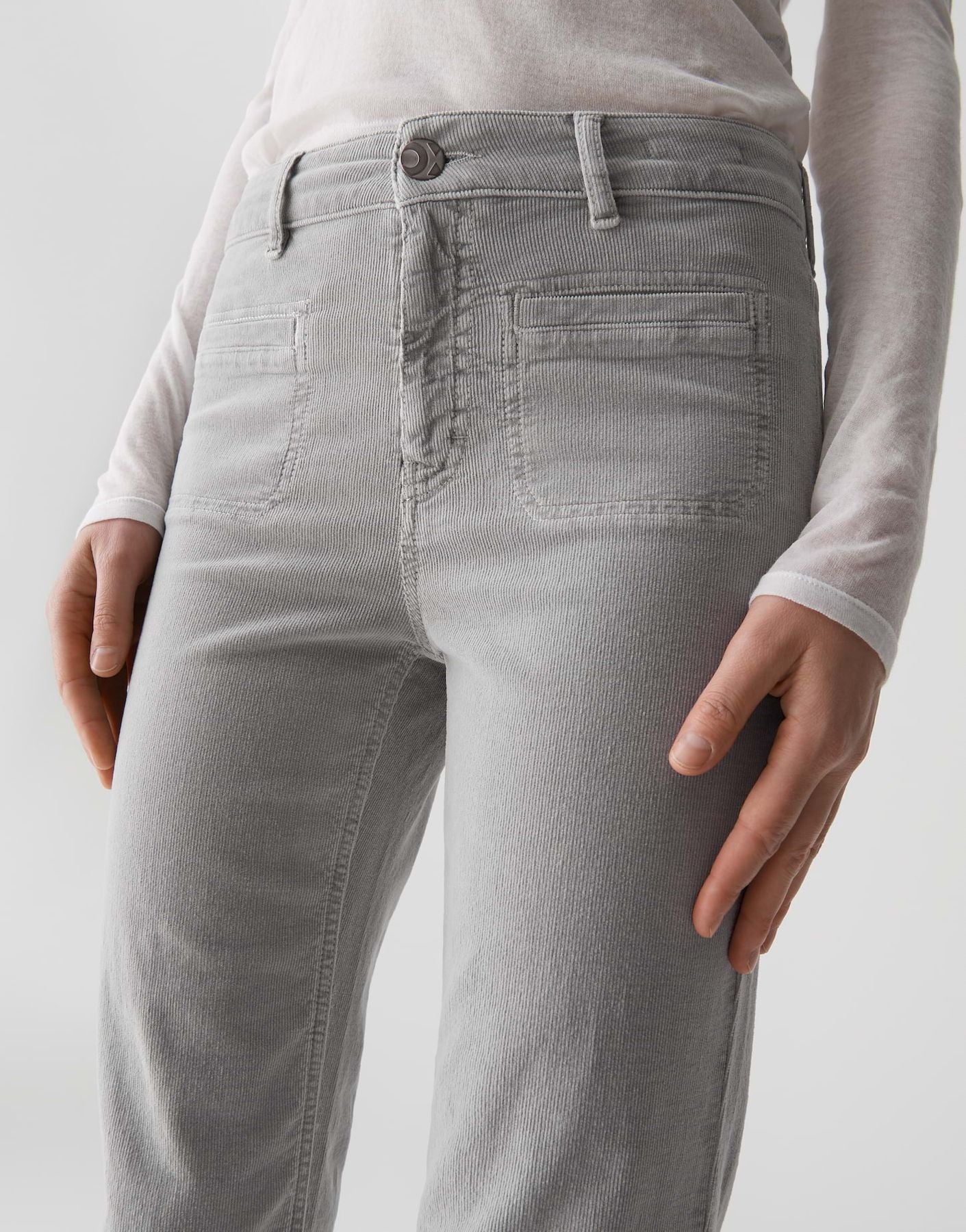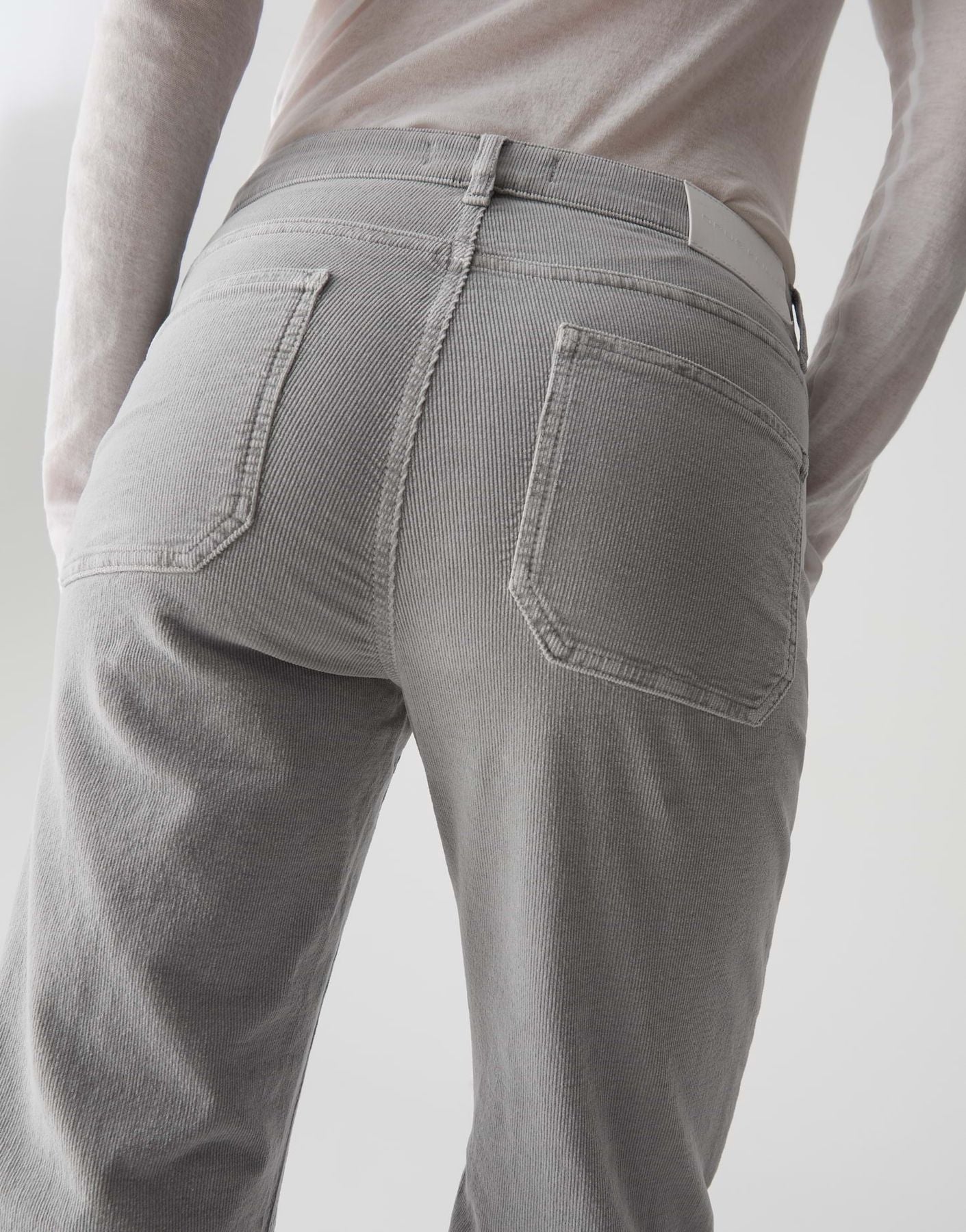 schmal am Oberschenkel, leicht ausgestelltes Bein, Hosenbein Innenlänge in jeder Größe: L32 ca. 81 cm, Model Größe 178 cm – trägt Größe 36, Cord, feine Rippstruktur, weicher Griff, samtige Oberfläche, elastischer Stoff, eckig abgesteppte Taschen vorne mit Paspeltaschen, aufgesetzte Taschen hinten, verdeckter Zip-Fly, Gürtelschlaufen