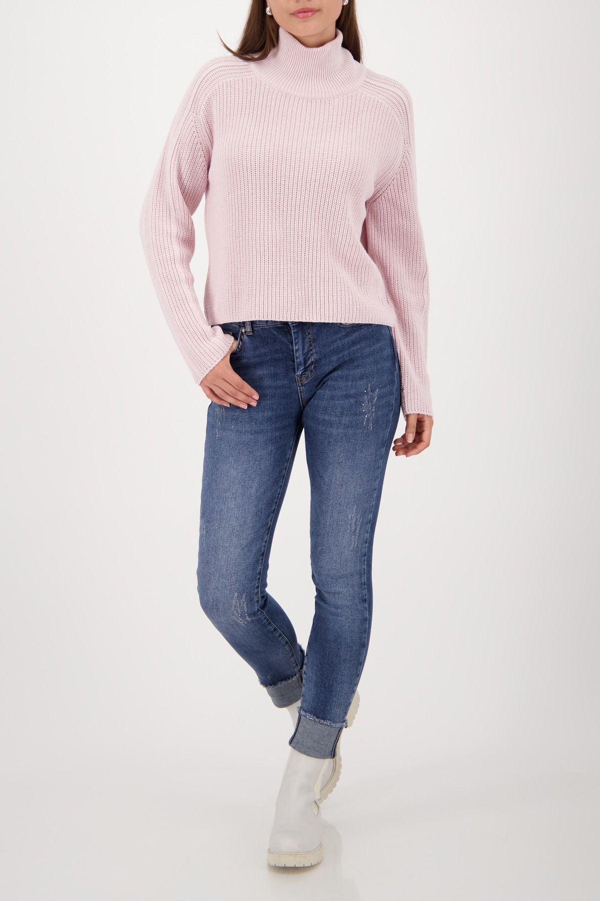 Eleganter Strickpullover aus einer hochwertigen Baumwolle mit Perlfangmuster und einem stilvollen Stehkragen – perfekt für selbstbewusste Looks.