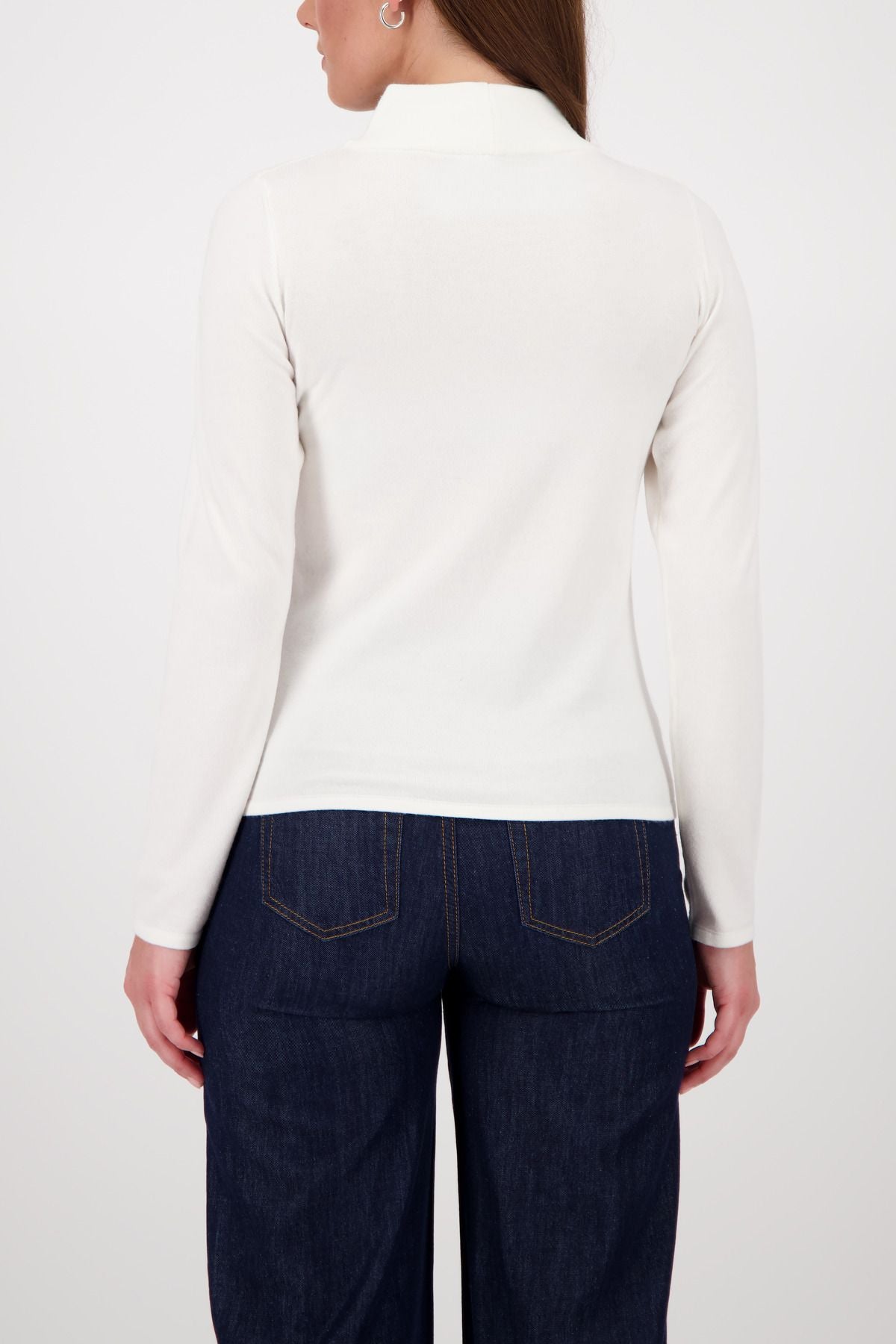Genießen Sie den stilvollen, leicht taillierten Basic-Pullover aus fließender Viskose mit weicher Haptik und elegantem Stehkragen.