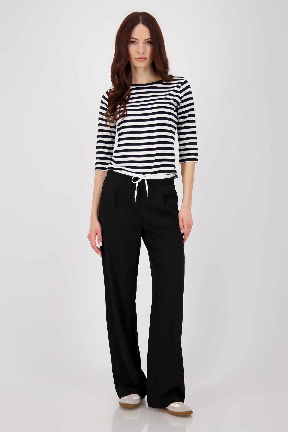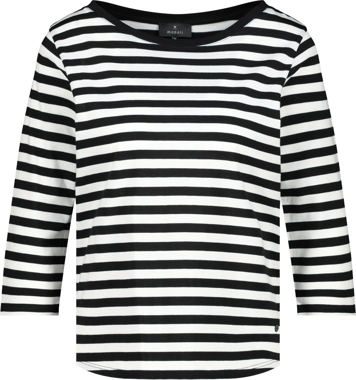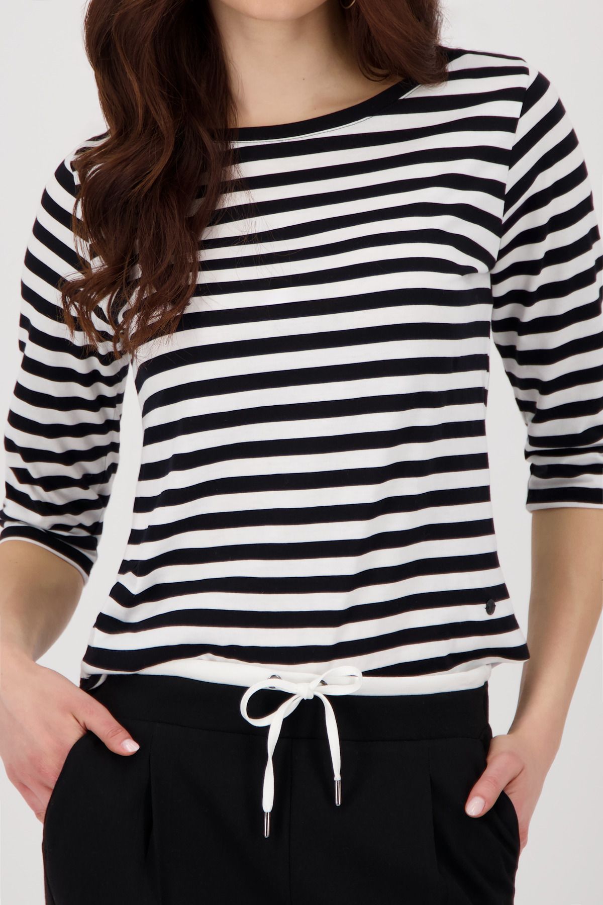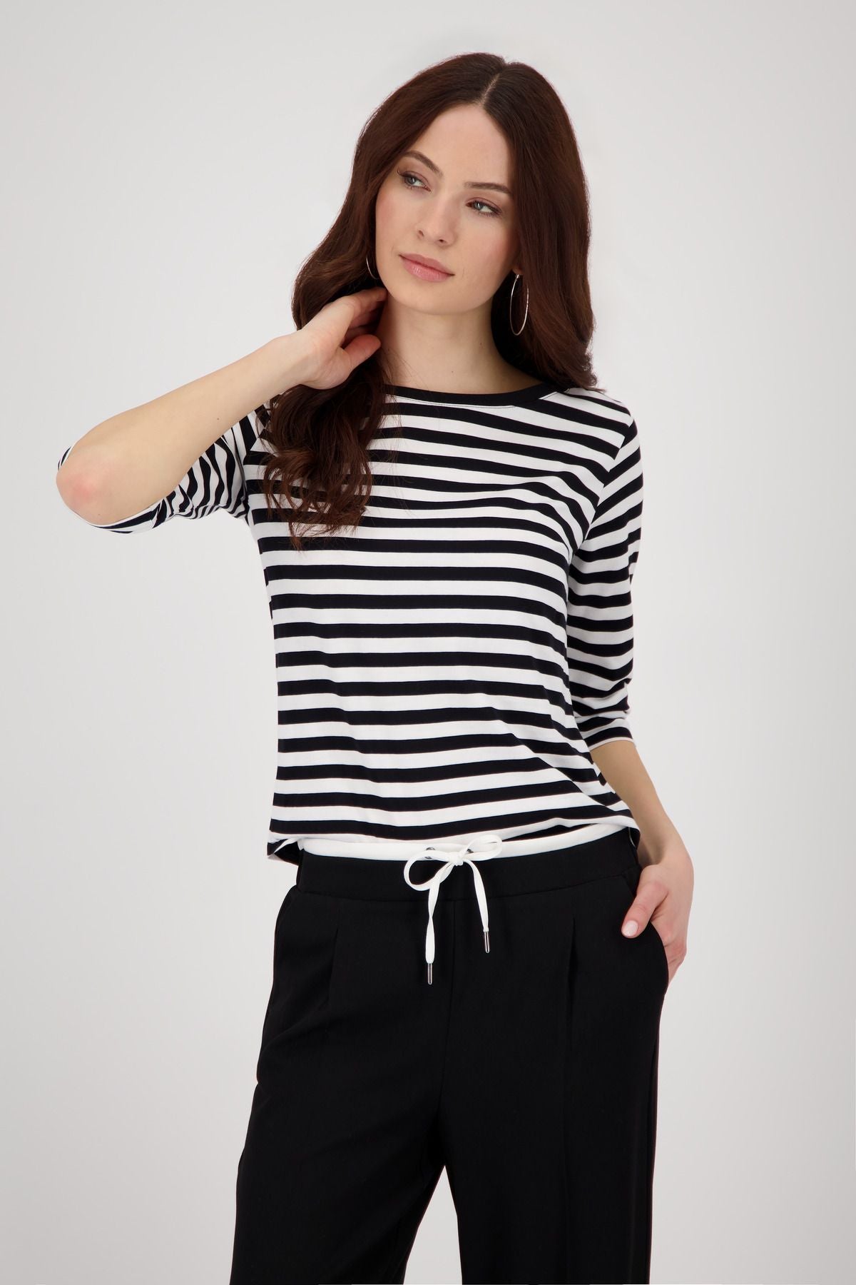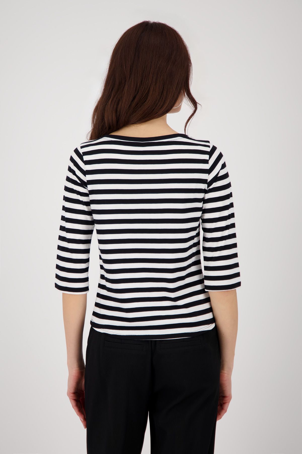 Elegantes Streifenshirt aus 100% Baumwolle, mit Rundhals-Ausschnitt, ¾-Arm und abgerundeter Vor– und Rückseite für stilsichere Auftritte.