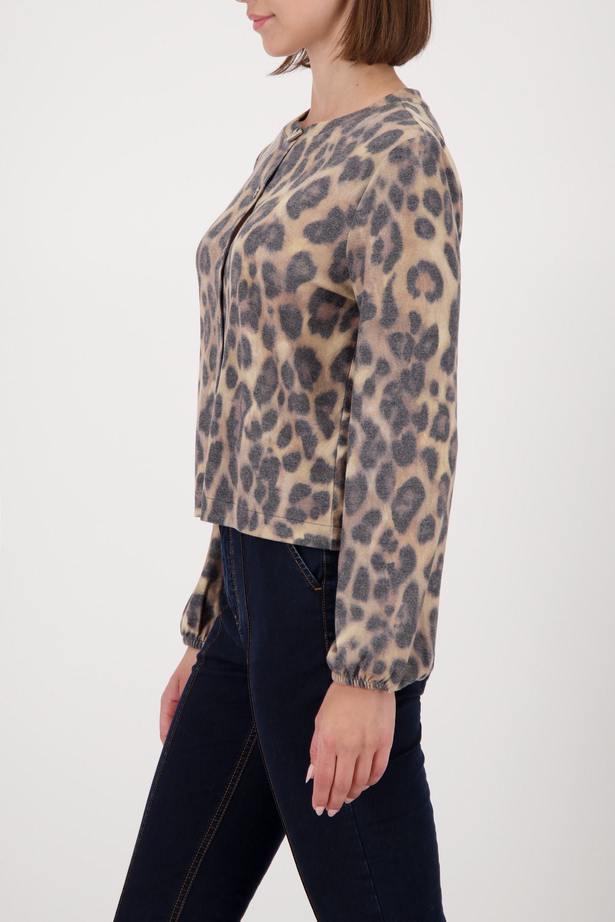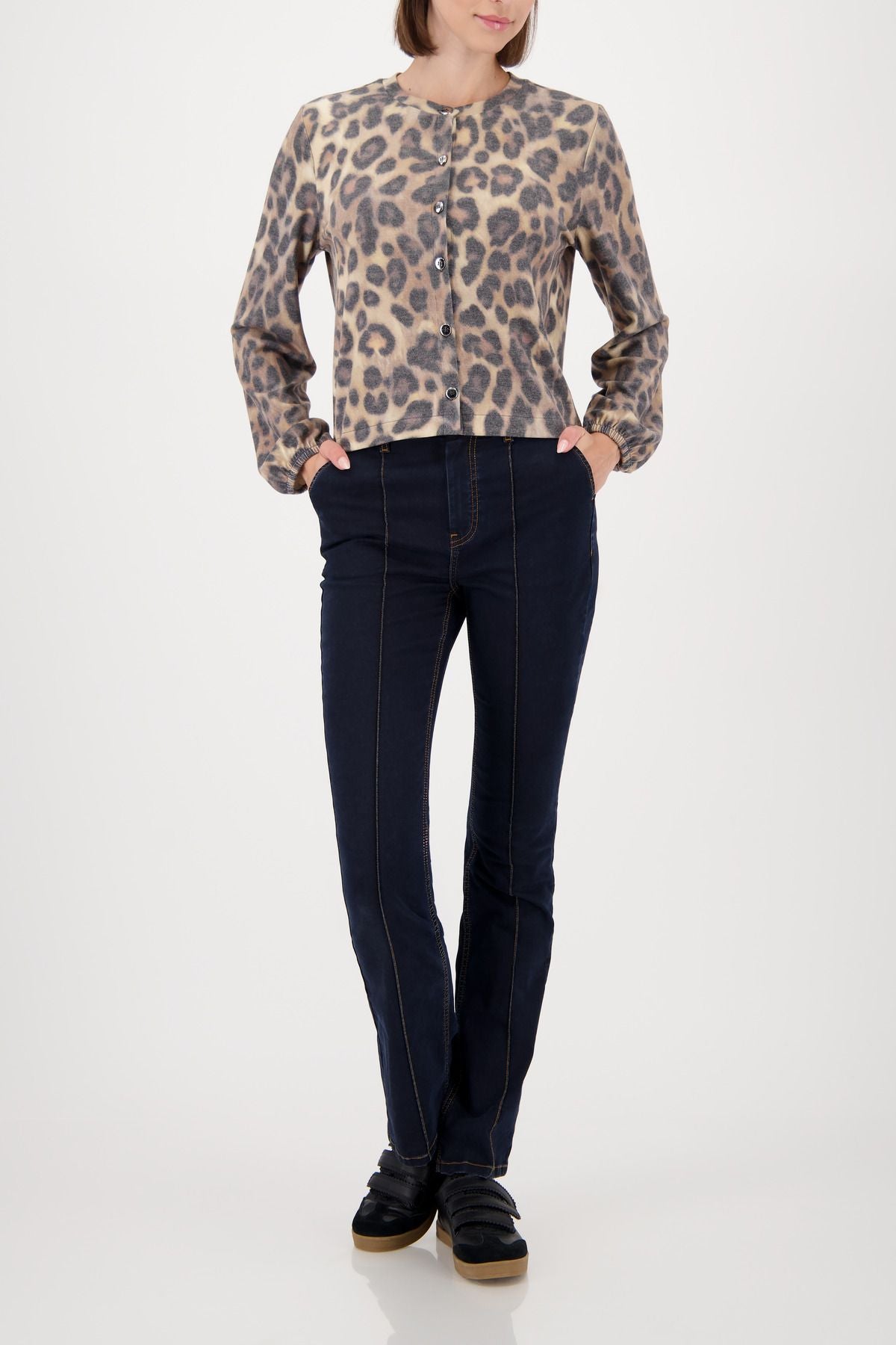 Diese Jacke aus fließender, elastischer Viskose überzeugt mit einem trendigen Leopardenmuster und einem bequemen Regular Fit. Der Rundhalsausschnitt, lange Ärmel und der Ärmelsaum mit Gummizug sorgen für angenehmen Tragekomfort, während die klassische Knopfleiste das Design elegant abrundet. Perfekt für stilbewusste Looks mit wildem Flair.