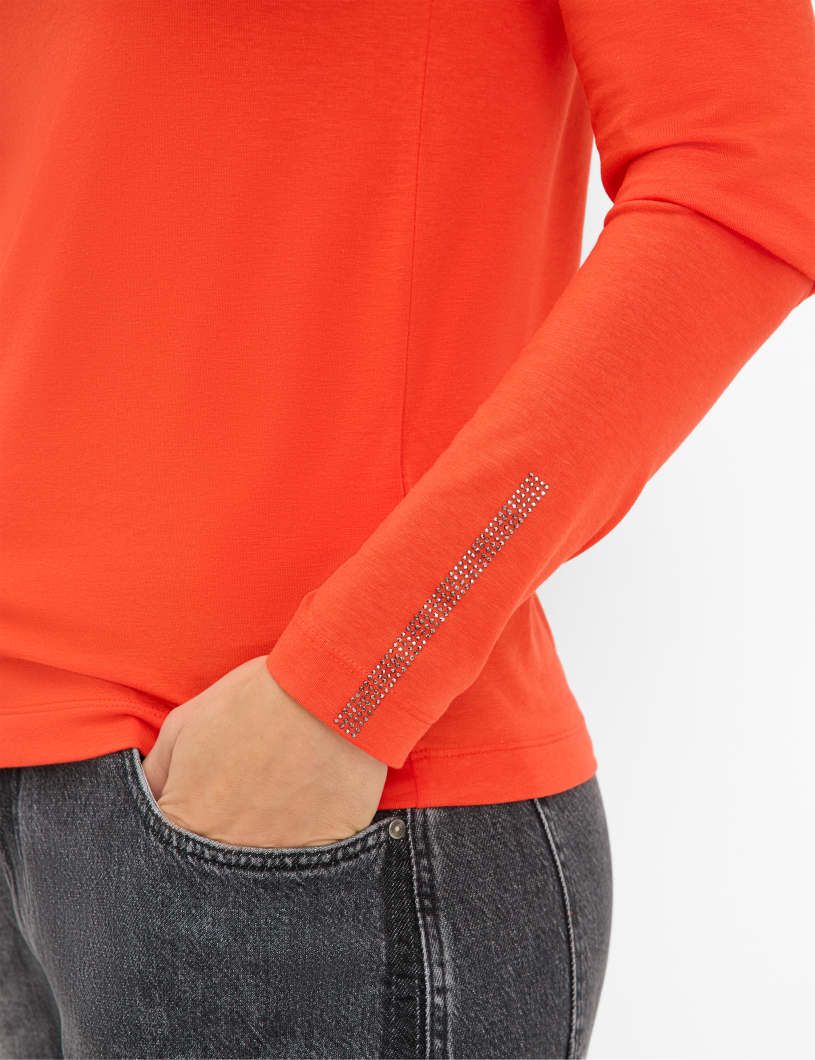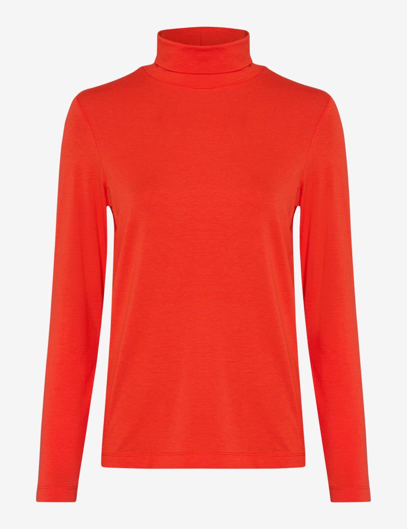 Elegant, puristisch, vielseitig: Das Longsleeve STYLE CARINA L ist ein echtes Essential für jede Garderobe. Der hohe Rollkragen verleiht dem schlichten Design eine klassische Note und macht das Shirt zum stilvollen Solisten – oder zur perfekten Basis für Layering-Looks. Die körpernahe Silhouette mit schmaler Schulter und sanfter Taillierung sorgt für eine feminine Passform, die sich mühelos kombinieren lässt – ob unter Blazer, Strick oder Mantel. Der hochwertige Mix aus Baumwolle, Modal und Elasthan punktet mit einem besonders soften Griff, hoher Elastizität und angenehmem Tragekomfort. Gefertigt aus feinem Jersey entsteht eine ebenmäßige und leicht glänzende Oberfläche, die für eine hochwertige und gepflegte Ausstrahlung sorgt. Diese Materialmischung vereint natürliche Atmungsaktivität mit Formstabilität und macht das Shirt zum idealen Begleiter für die Herbst-/Wintersaison – ob „drunter oder drüber“. Farbe