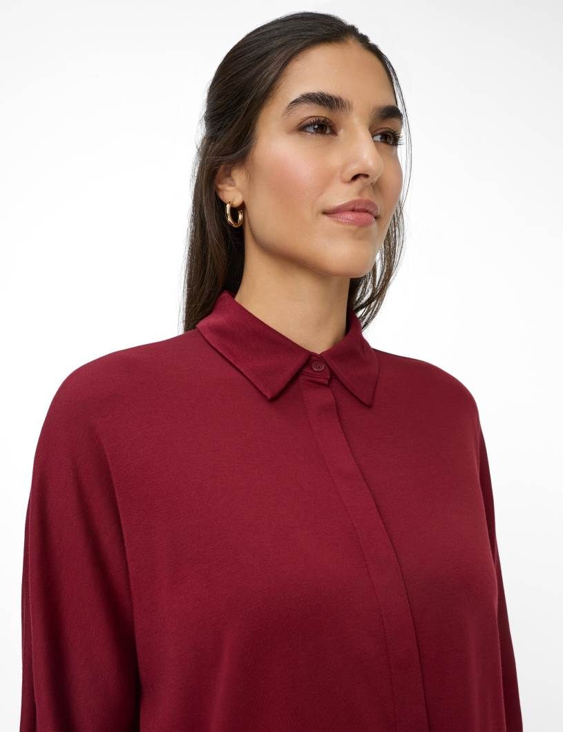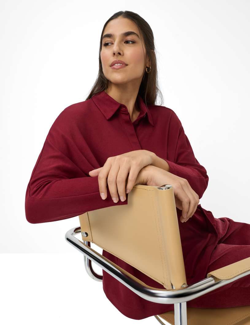 Ein elegantes Must-have für die kühleren Monate ist dieses Blusenshirt im Style CELIA M, das mit zeitlosem Chic und moderner Lässigkeit punktet. Die Kombination aus cleanem Design und einer entspannten Silhouette mit überschnittenen Schultern und einem oversized Schnitt ohne Taillierung macht dieses Damenshirt zu einem vielseitigen Allrounder. Der klassische Hemdkragen und die verdeckte Knopfleiste verleihen dem Look eine dezente Raffinesse, während die 3/4-Ärmel die perfekte Balance zwischen Stil und Funktionalität schaffen. Gefertigt aus einem hochwertigen Modal-Baumwoll-Mix, bietet dieses Shirt nicht nur eine exklusive Optik, sondern auch ein herausragendes Tragegefühl. Modal überzeugt mit seiner seidig-weichen Textur und atmungsaktiven Eigenschaften, während Baumwolle für Langlebigkeit und natürlichen Komfort sorgt. Dieses besondere Zusammenspiel aus Design und Material macht das Shirt zu einem stilvollen und gleichzeitig bequemen Begleiter, der in keiner Garderobe fehlen sollte.