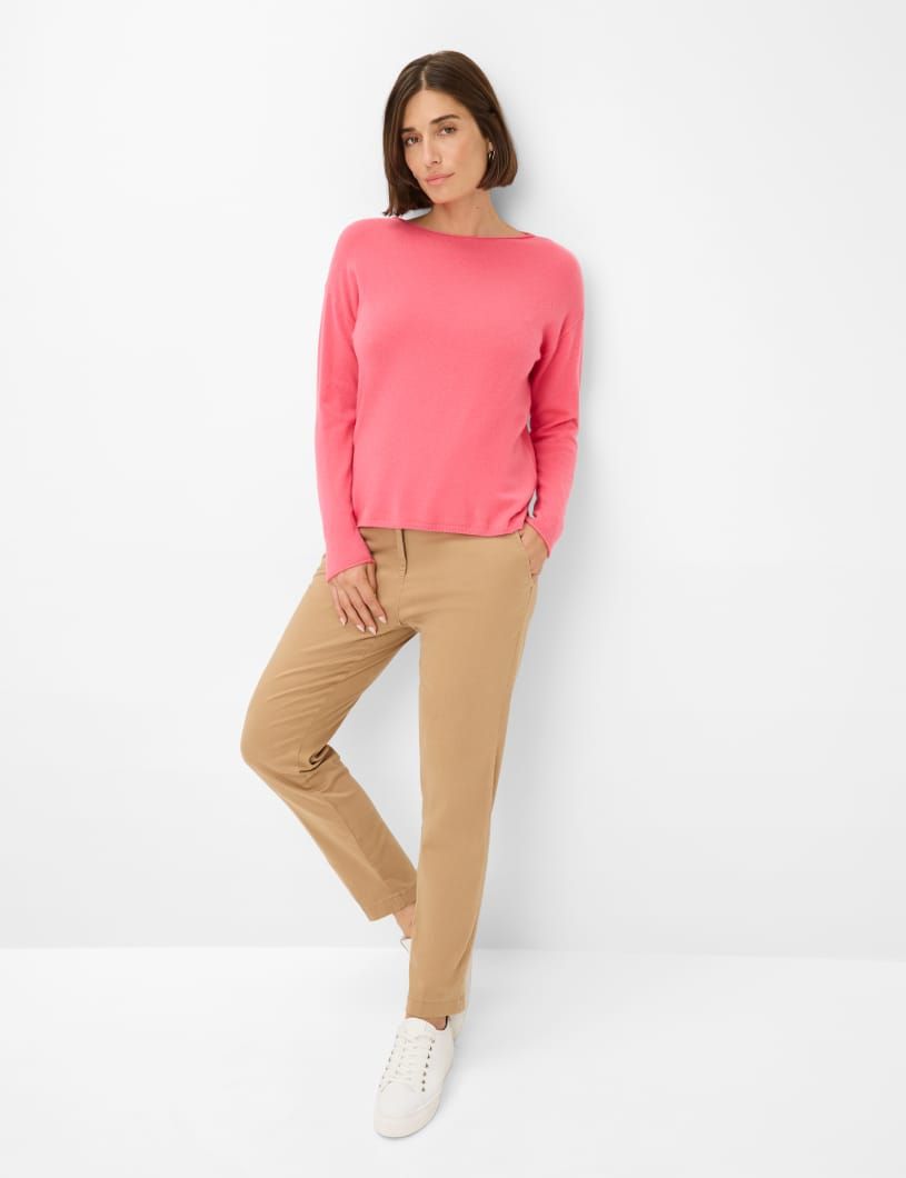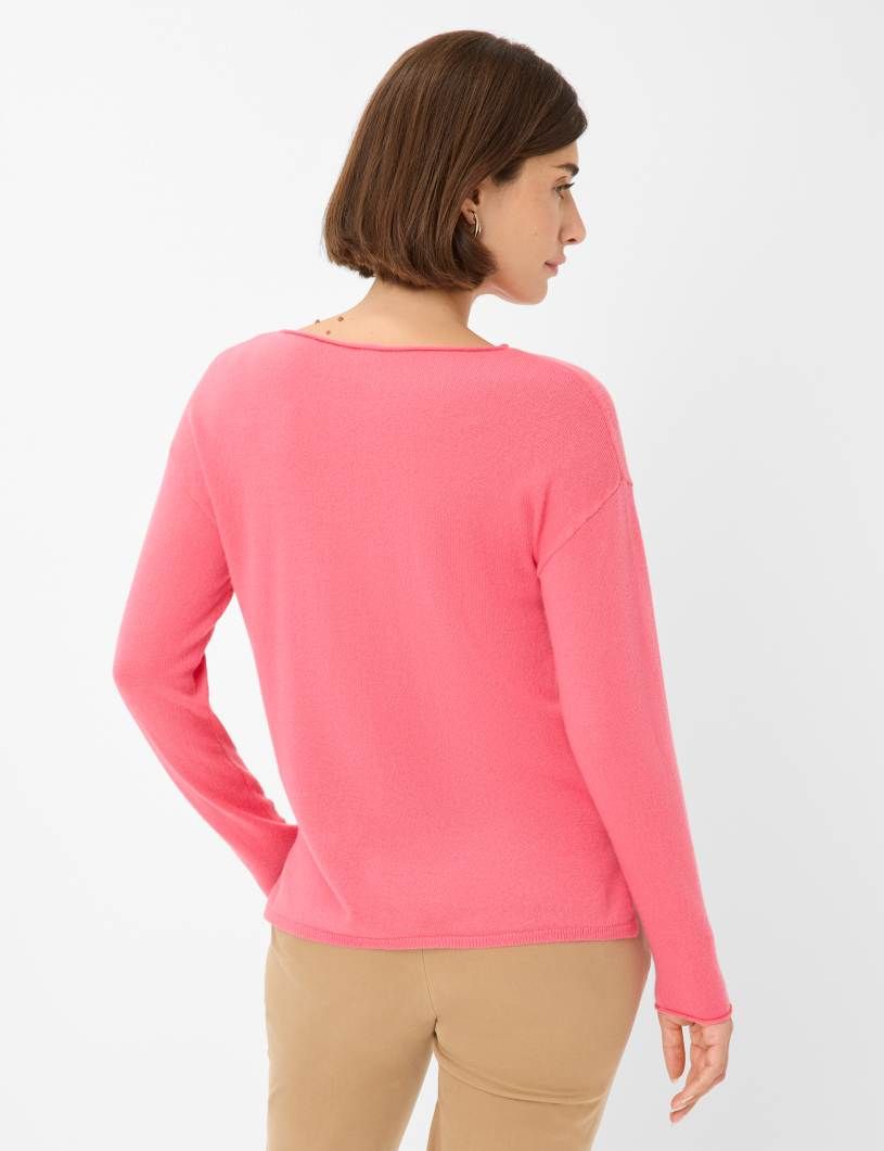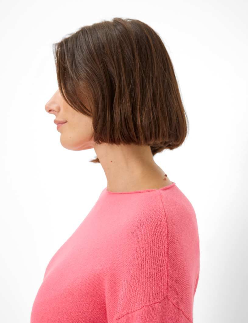 Eleganz trifft Gemütlichkeit – der Strickpullover im Style LIZ wird zum unverzichtbaren Essential Ihrer Herbstgarderobe. Mit seinem raffinierten U-Boot-Ausschnitt und der lässigen Silhouette, die durch überschnittene Schultern und einen gerundeten, hinten verlängerten Saum betont wird, vereint dieses Modell zeitlose Weiblichkeit mit moderner Leichtigkeit. Feine Details wie dezente Rollabschlüsse am Kragen und kleine Saumschlitze verleihen dem Design eine exklusive Note und machen es zu einem echten Blickfang. Gefertigt aus edlem Single Jersey, begeistert der Pullover nicht nur durch seinen Look, sondern auch durch die hochwertige Materialqualität. Der luxuriöse Merino-Cashmere-Mix, bestehend aus weicher Schurwolle und feinstem Kaschmir, sorgt für ein unvergleichliches Tragegefühl und spendet wohlige Wärme an kalten Tagen. Während die Schurwolle durch ihre Atmungsaktivität und Elastizität besticht, verwöhnt der Kaschmir-Anteil mit seiner unverkennbaren Geschmeidigkeit und Eleganz. Farbe