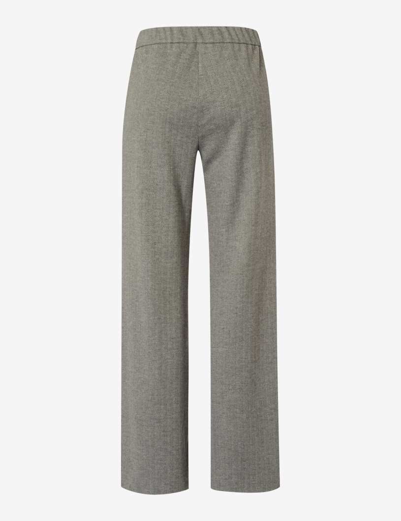 Die Flatfronthose im STYLE MAINE überzeugt mit ihrem cleanen, modernen Look, der durch das weit geschnittene Bein besonders elegant wirkt. Die klare Linienführung schafft eine fließende Silhouette, die sowohl zeitlos als auch absolut zeitgemäß ist. Dezente französische Eingrifftaschen fügen sich harmonisch ins Design ein und der elastische Gummibund bleibt optisch zurückhaltend, bietet aber ein Plus an Bequemlichkeit. Das feine Herringbone-Muster bringt Struktur und eine subtile Tiefe in den Look. Gefertigt ist die Hose aus hochwertigem Jersey – einem angenehm weichen, elastischen Material, das sich dem Körper anpasst und zugleich seine Form bewahrt. Der Materialmix aus Polyester, Viskose und Elasthan vereint Pflegeleichtigkeit mit einem geschmeidigen Griff und einer besonders komfortablen Passform. Jersey steht hier nicht nur für Bequemlichkeit, sondern auch für modische Souveränität im Alltag.