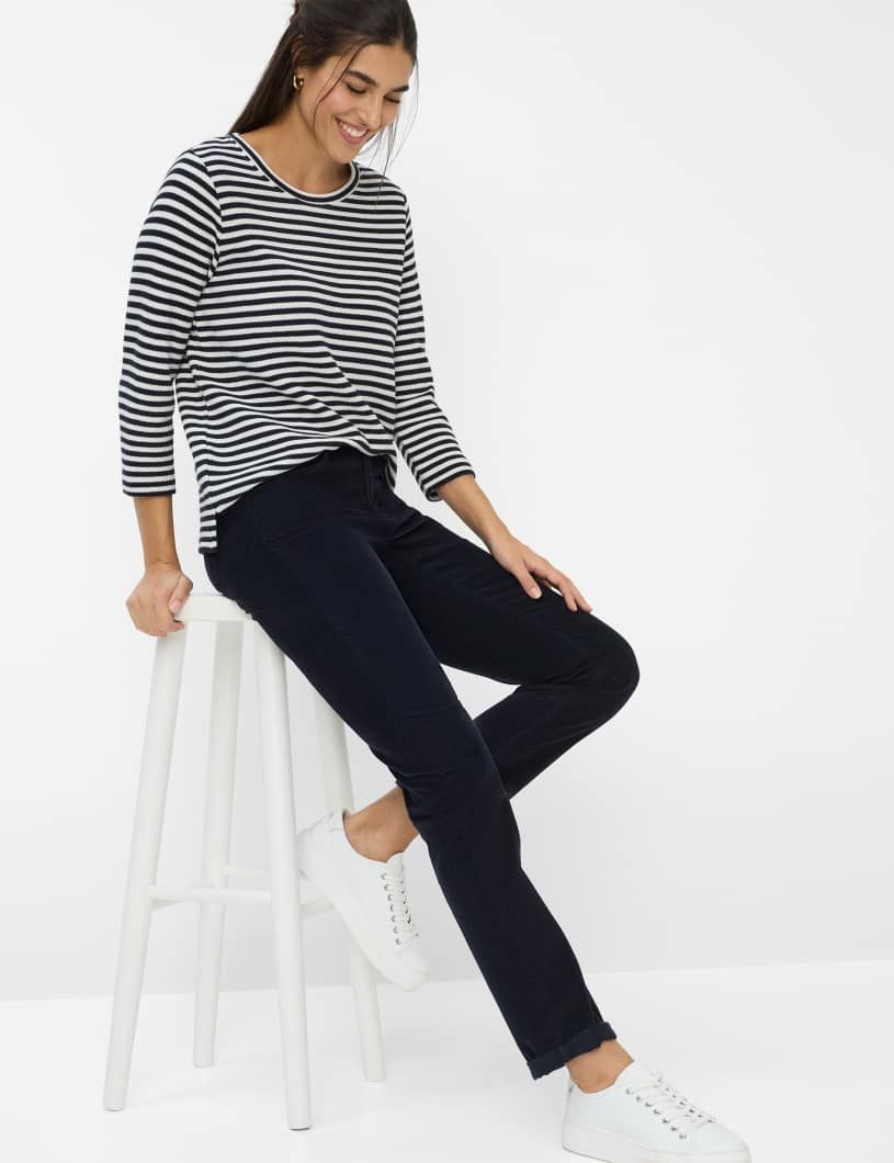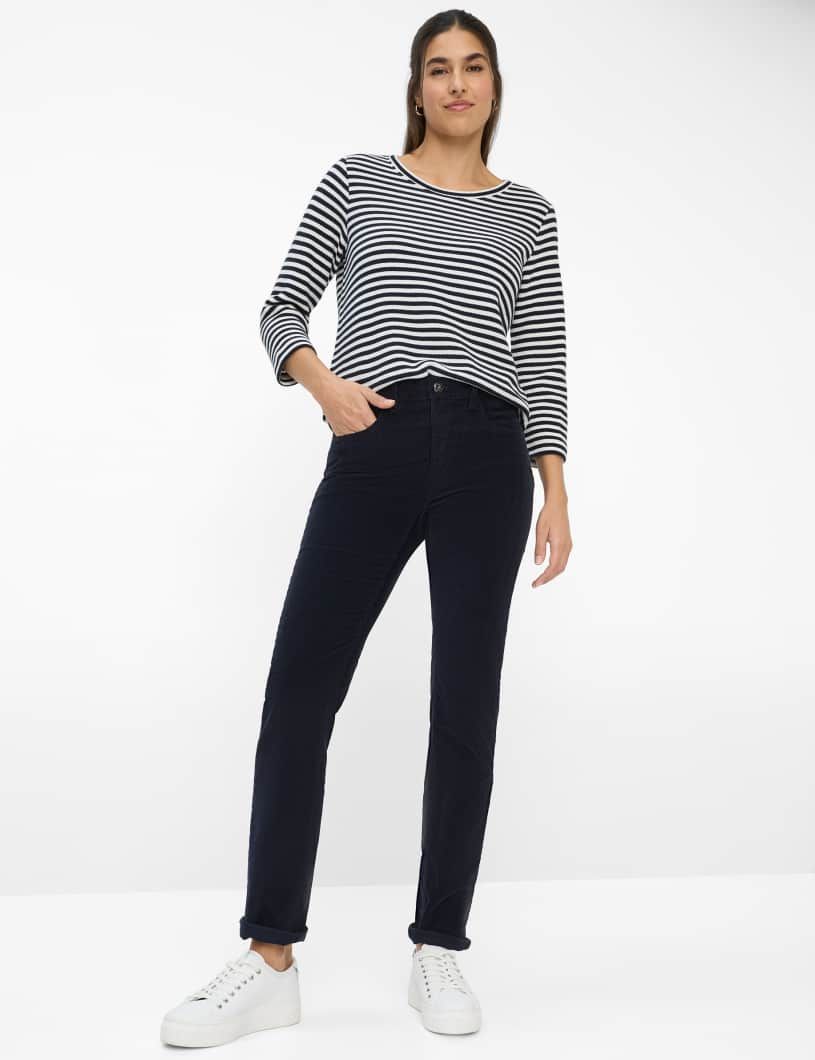 Mit ihrer harmonischen Farbgebung ist die Cordhose im Style MARY ein echtes Must-have für feminine Herbst-Looks. Die klassische Five-Pocket-Hose überzeugt mit gerader Silhouette und normaler Leibhöhe – ein Schnitt, der zeitlos wirkt und dabei angenehm zu tragen ist. Dezente Gesäßtaschen, eine kleine Coinpocket sowie praktische Einschubtaschen ergänzen das typische Design. Optisch besticht die Five-Pocket-Hose durch den feinen Cord mit seiner charakteristischen Rippenstruktur. Das Material besteht aus einem weichen Baumwollmix, der durch Elastan an Flexibilität gewinnt – so passt sich die Hose jeder Bewegung an, ohne an Formstabilität zu verlieren. Die besondere Cord-Qualität punktet mit einer leuchtenden Farbbrillanz und bietet mit ihrer umfangreichen Farbpalette viele Kombinationsmöglichkeiten – ideal für stilvolle Everyday-Outfits.