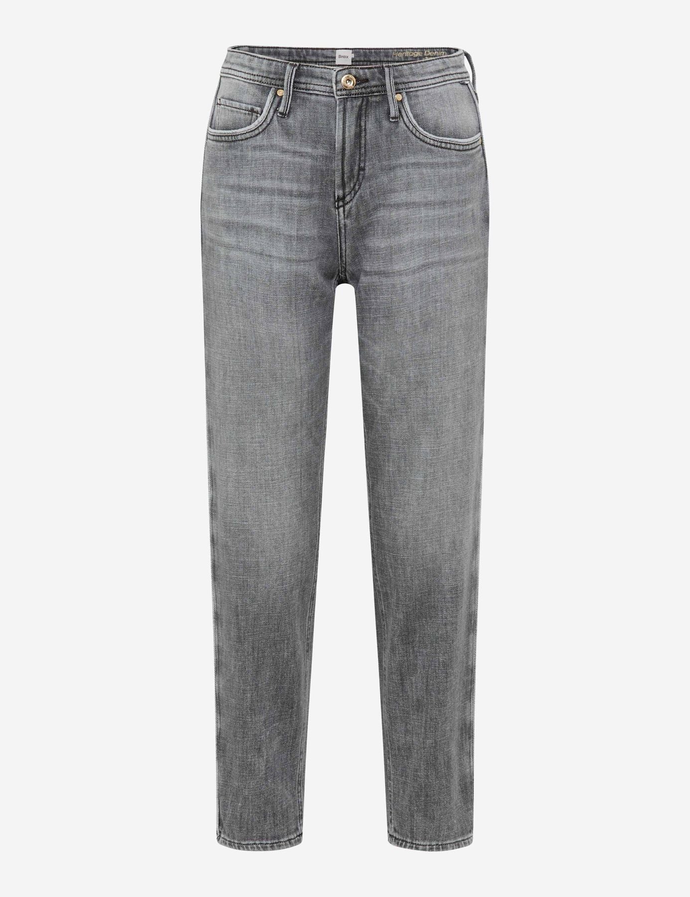 Mit der Five-Pocket-Jeans STYLE MILEY S gelingt Ihnen ein femininer Auftritt mit Charakter. Die konisch geschnittene Silhouette im Tapered Fit mit dezenter Passe am hinteren Bund formt eine moderne Linie, die durch die verkürzte Schrittlänge einen zeitgemäßen Twist erhält und das Bein optisch streckt. Mit Einschubtaschen, einer praktischen Coinpocket sowie aufgesetzten Gesäßtaschen verbindet dieses Design Alltagstauglichkeit mit lässigem Chic. Für dynamische Bewegungsfreiheit sorgt der hochwertige Baumwollmix, ergänzt durch einen Elasthananteil – dadurch bleibt das Material angenehm weich und folgt jeder Bewegung, ohne an Form zu verlieren. Charakteristisch für die Denim-Qualität zeigt sich die Oberfläche authentisch und robust, steht für Strapazierfähigkeit und einen markanten Ausdruck, der den urbanen Heritage-Stil in Ihren Alltag bringt.