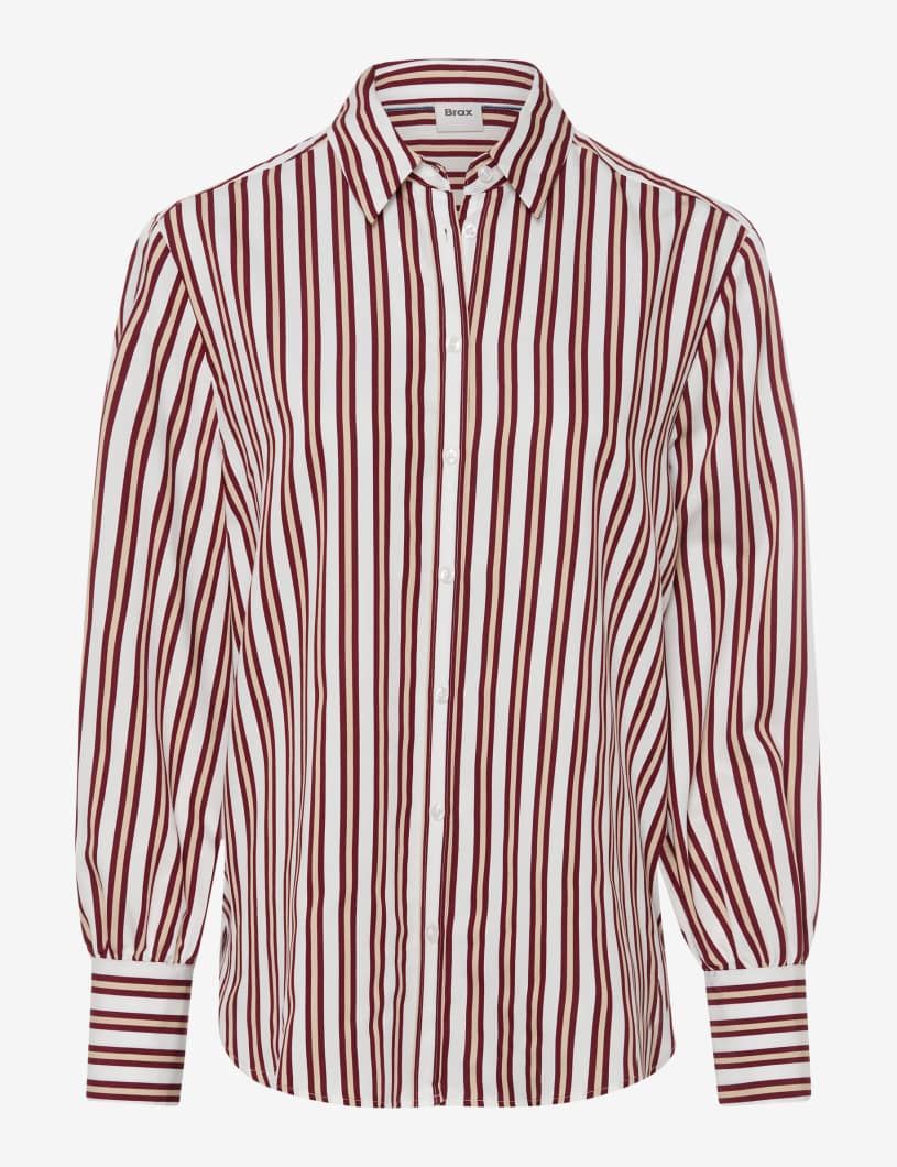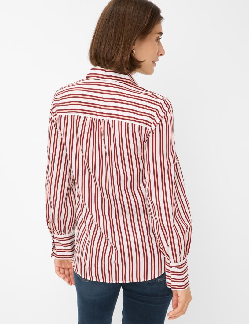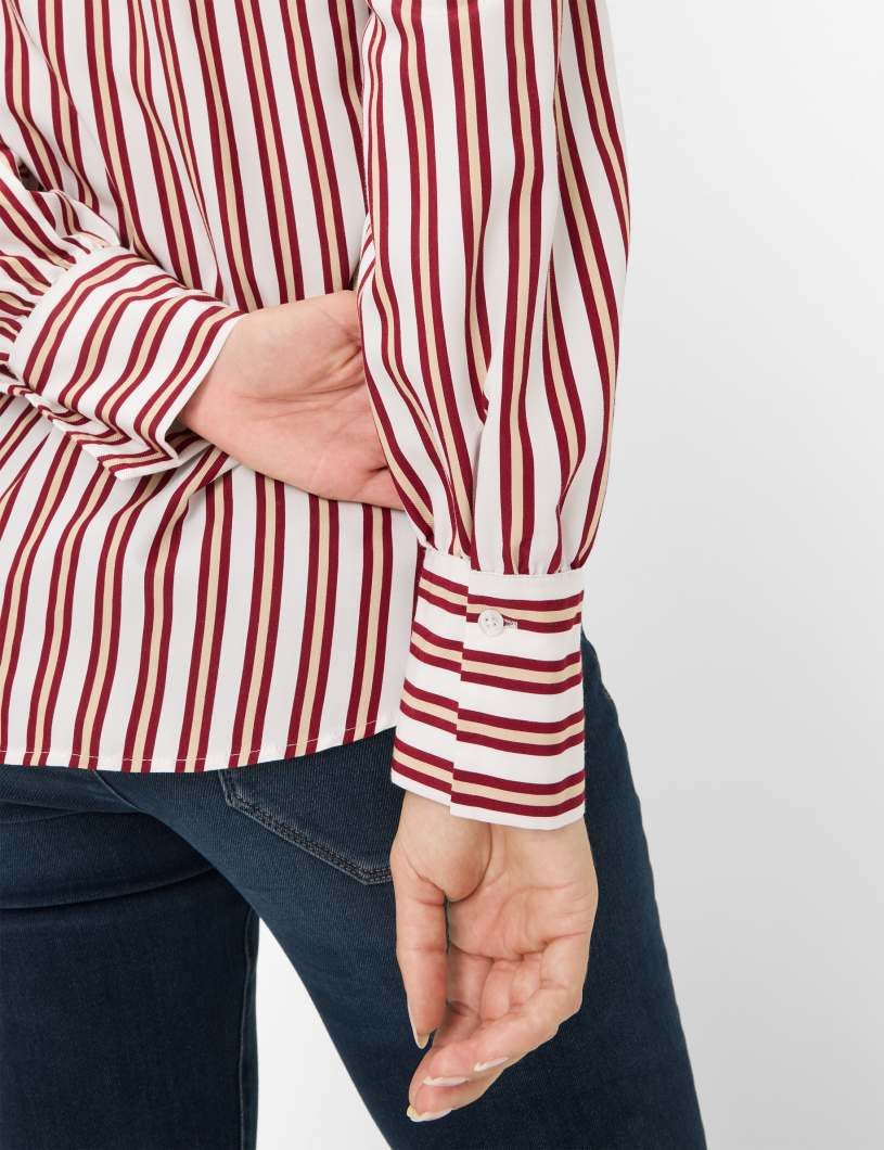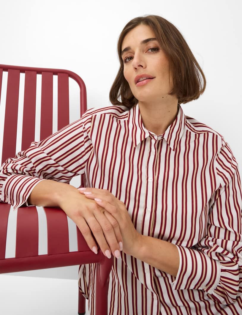 Mit der Bluse im STYLE VIC zieht ein Klassiker neu interpretiert in Ihre Garderobe ein: Die Hemdbluse überzeugt durch ihr vertikales Streifenmuster, streckend und zugleich modisch auf den Punkt. Der klassische Hemdkragen, die durchgehende Knopfleiste sowie die 1-Knopf-Manschetten unterstreichen den cleanen, eleganten Look. Raffiniert: Die leicht überschnittenen Schultern und der entspannte Schnitt verleihen der Bluse eine moderne Lässigkeit mit femininer Note. Gefertigt ist die Damenbluse aus hochwertigem Popeline-Gewebe mit Viskose und Polyamid – das Ergebnis ist ein angenehm leichter, weicher Griff mit fließendem Fall. Die Viskose sorgt für Tragekomfort und Atmungsaktivität, während der Polyamidanteil der Bluse eine formstabile Struktur verleiht – ideal für den Alltag wie fürs Büro. Die moderne Streifenbluse mit klassischem Twist ist die perfekte Wahl für stilbewusste Frauen, die klassische Elemente lieben, aber nicht auf moderne Akzente verzichten möchten. Vielseitig kombinierbar, immer gepflegt – ein echtes Must-have für jeden Kleiderschrank.