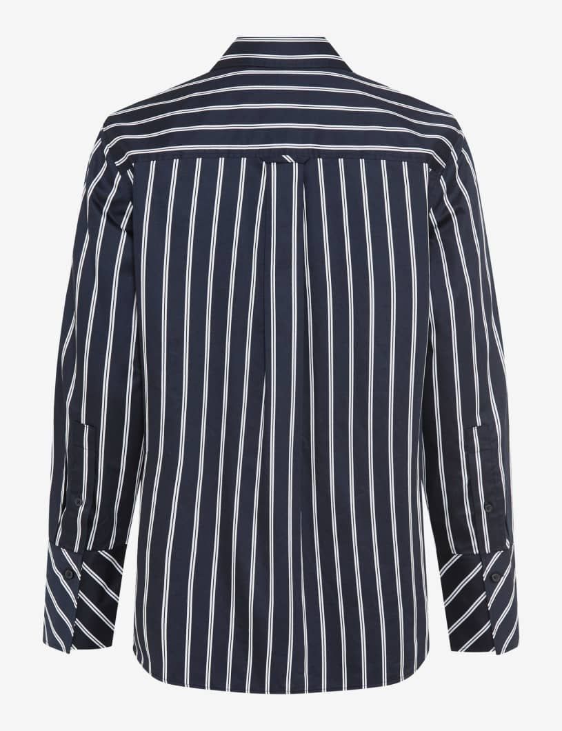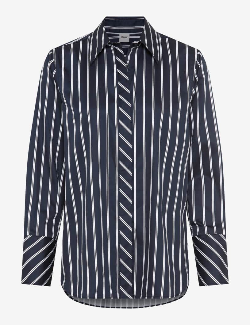 Streifen neu interpretiert – so präsentiert sich die Hemdbluse im Style VIKI für Damen und setzt ein kraftvolles Fashion-Statement. Die Oversized-Silhouette verleiht dem Look eine lässige Note und sorgt zugleich für eine schmeichelnde, modische Linie. Charakteristisch sind die feinen Längsstreifen, die von quer verlaufenden Details an Manschetten und verdeckter Knopfleiste raffiniert kontrastiert werden. Ein traditioneller Hemdkragen unterstreicht die strukturierte Form dieser Bluse und macht sie zum perfekten Allrounder – sowohl zu Jeans als auch zur Anzughose. Die reine Baumwolle überzeugt mit natürlicher Atmungsaktivität, angenehmer Haptik und unkompliziertem Tragekomfort. Das edle Satin-Finish sorgt für einen sanften Glanz und eine geschmeidige Oberfläche, die dem Look feminine Leichtigkeit und einen Hauch Luxus verleiht. Dank Easy Care-Ausstattung ist dieses Hemd besonders pflegeleicht und unkompliziert – ideal für einen selbstbewussten Auftritt im Alltag oder im Büro, ohne Kompromisse bei Stil und Komfort einzugehen. Farbe