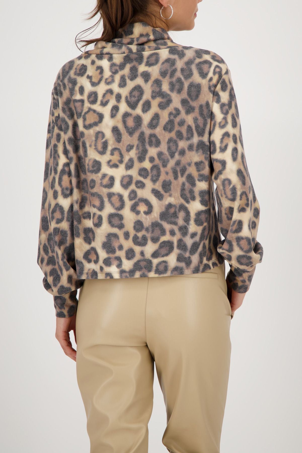 Dieses stilvolle Sweatshirt vereint fließende Viskose mit elastischem Material und sorgt mit einem Allover-Leopardenmuster für einen modernen Look.