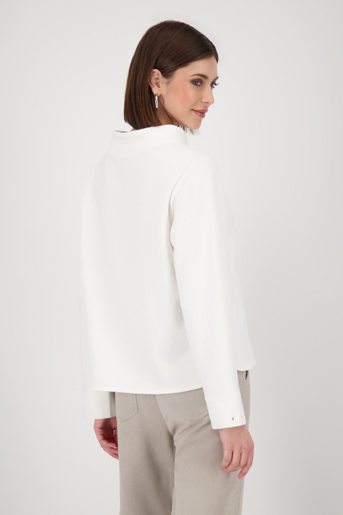 Dieses Sweatshirt aus elastischem Modal überzeugt durch seine sanfte Haptik und moderne Details. Der Stehkragen mit Bindeband sorgt für einen lässigen Look, während der breite Ärmelsaum mit Schlitz und Niete stilvolle Akzente setzt. Eine abgerundete Vorder- und Rückseite runden das Design harmonisch ab. Farbe