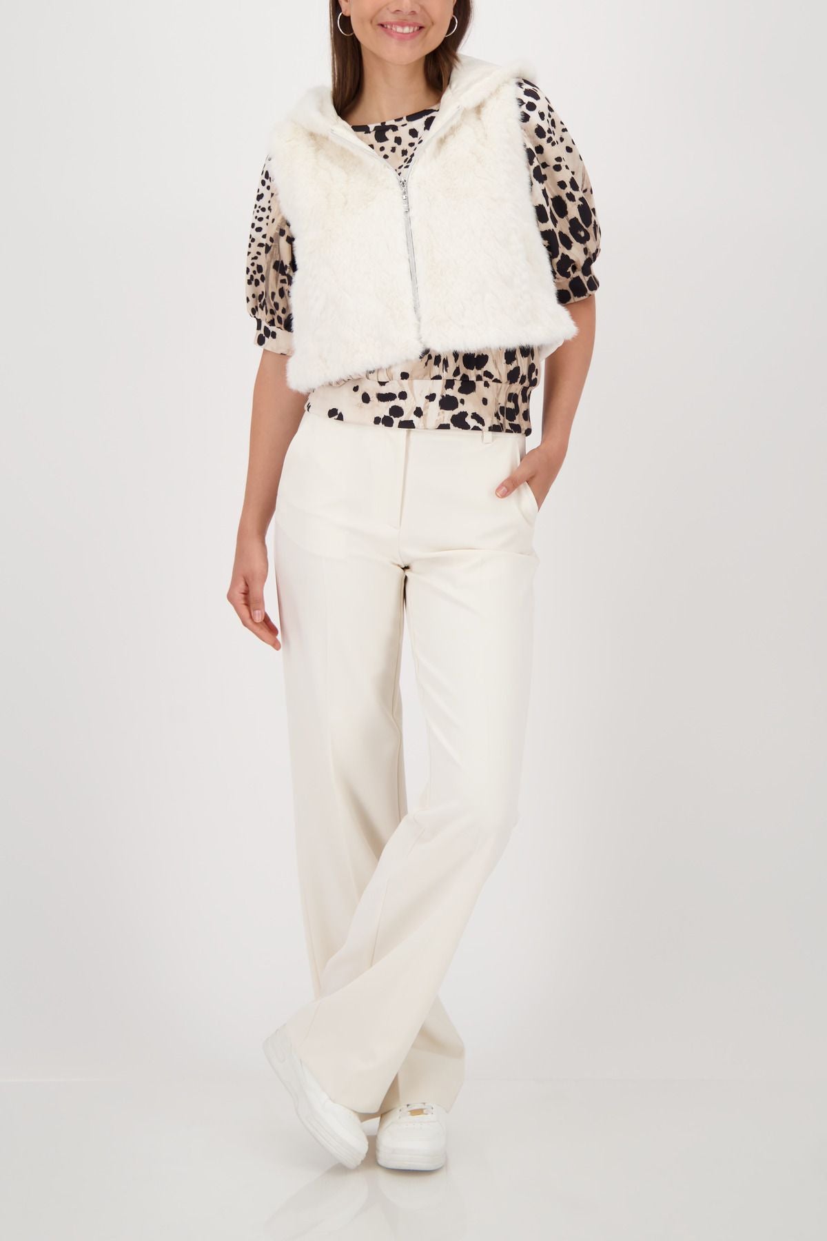 Die stilvolle Kunstpelz-Weste begeistert mit flauschiger Haptik, gesteppter Rückseite und praktischen Eingrifftaschen – ein Fashion-Highlight!
