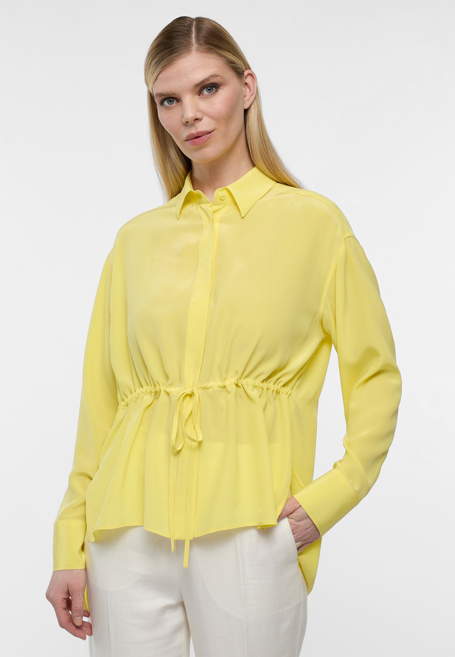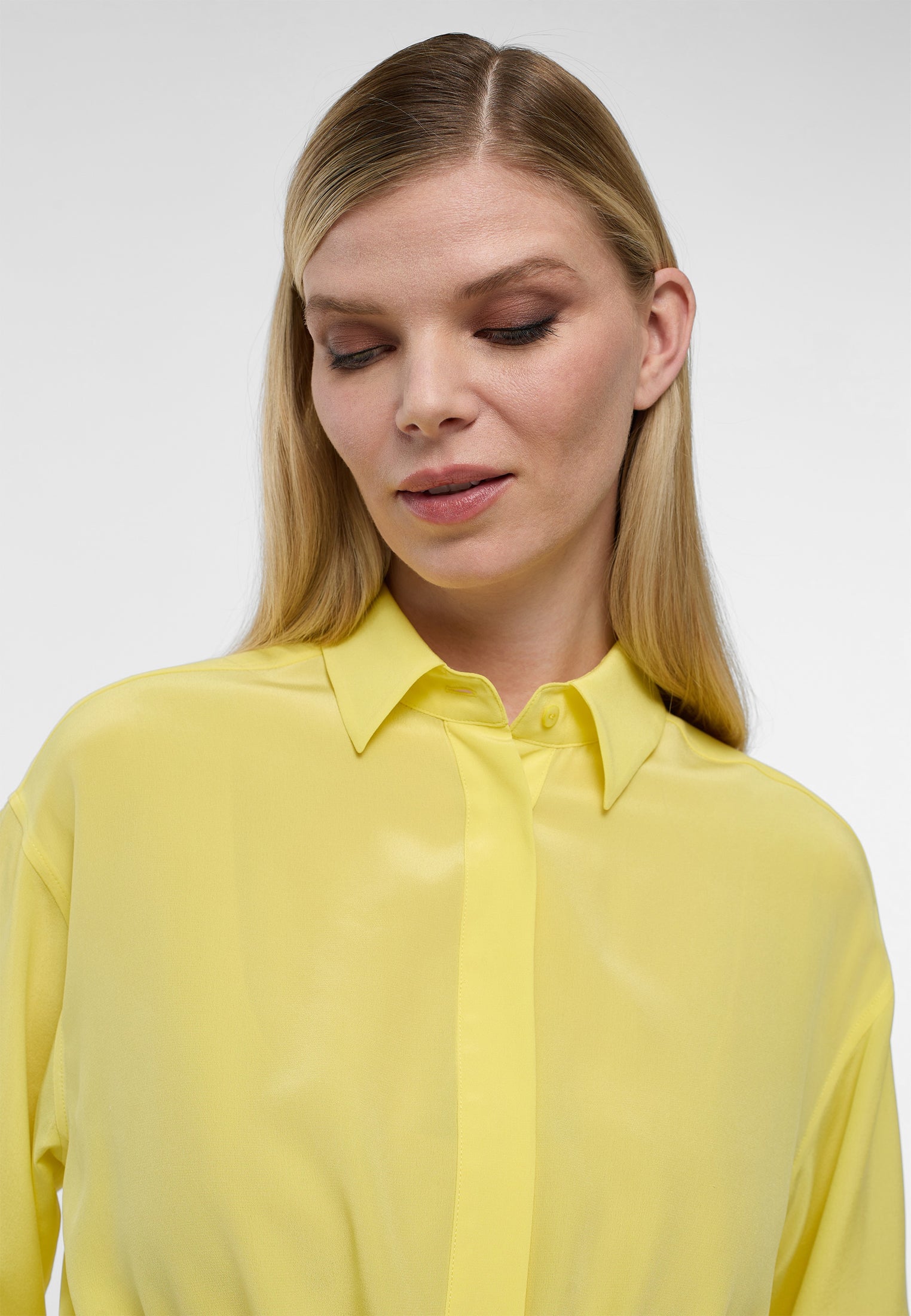 Wenn Sie Wert auf ein exclusives Erscheinungsbild legen, dann liegen Sie mit unserer unifarbenen, eleganten Seiden-Bluse mit Hemd-Kragen und verdeckter Knopfleiste goldrichtig.