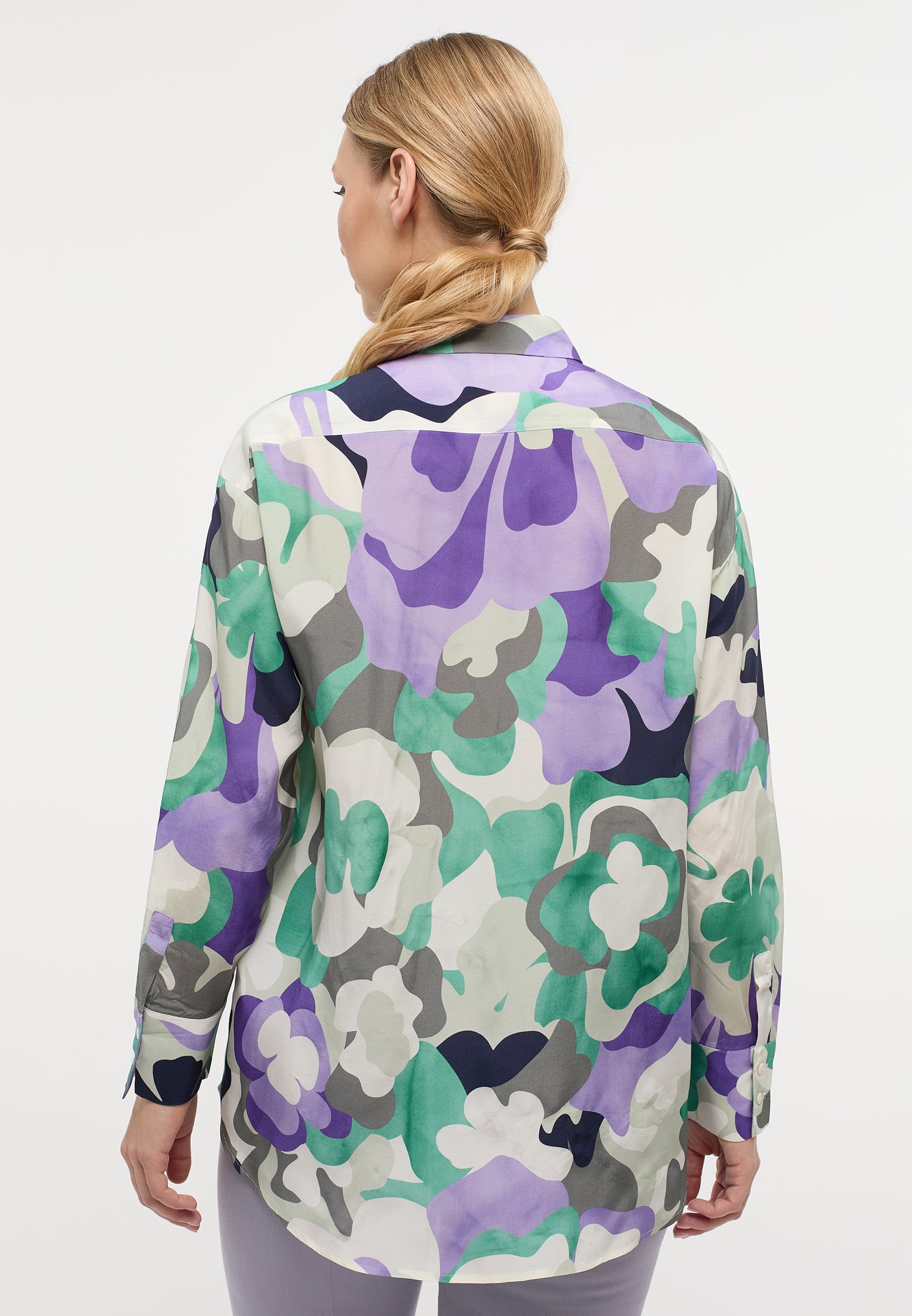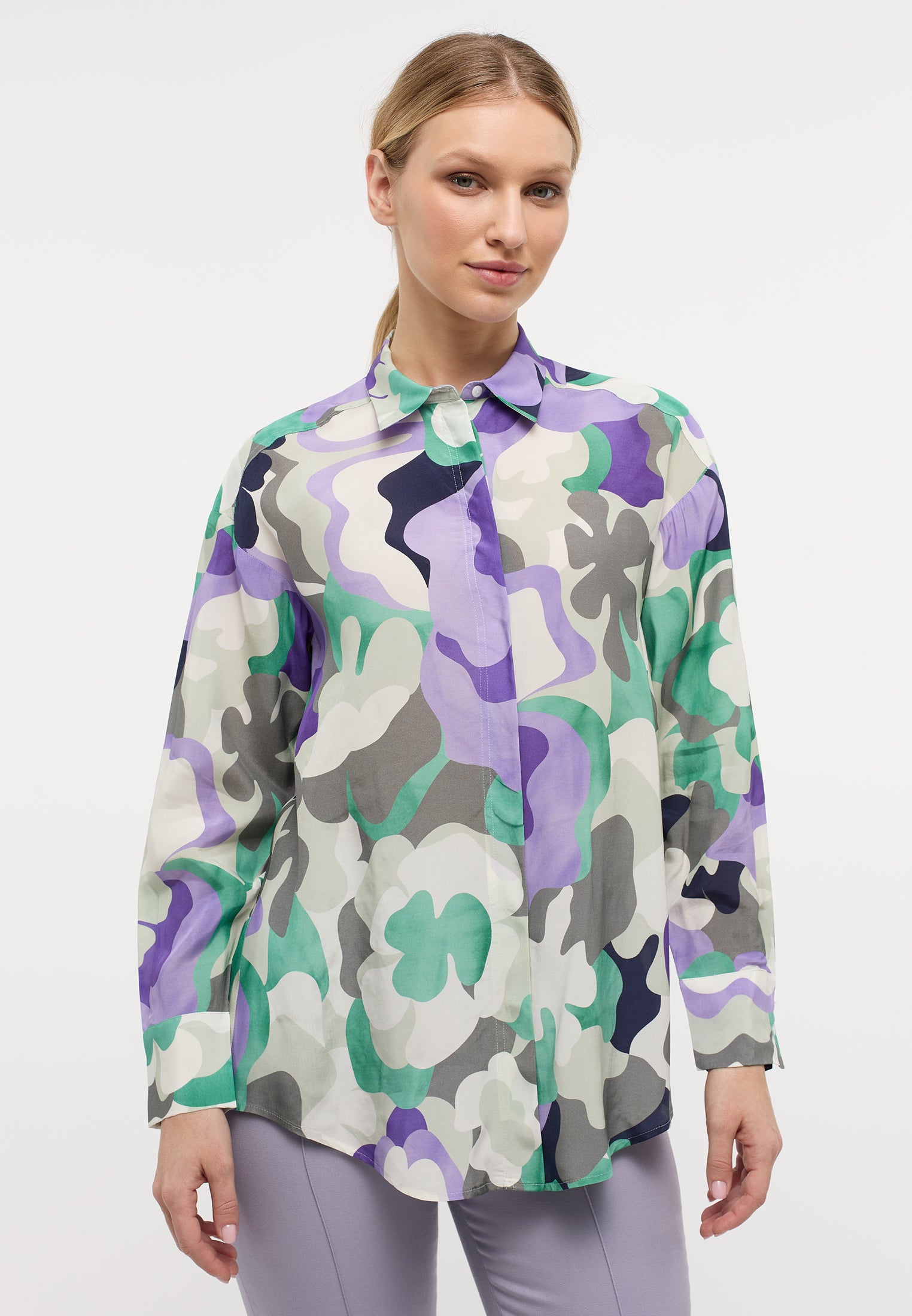 Diese Bluse aus unserem Premiumsegment 1863 by ETERNA, mit einer Rückenlänge von 76 cm, umspielt mit weich fließender Qualität (100% Viskose) perfekt Ihre weibliche Silhouette und ist CO₂-bilanziert gefertigt.