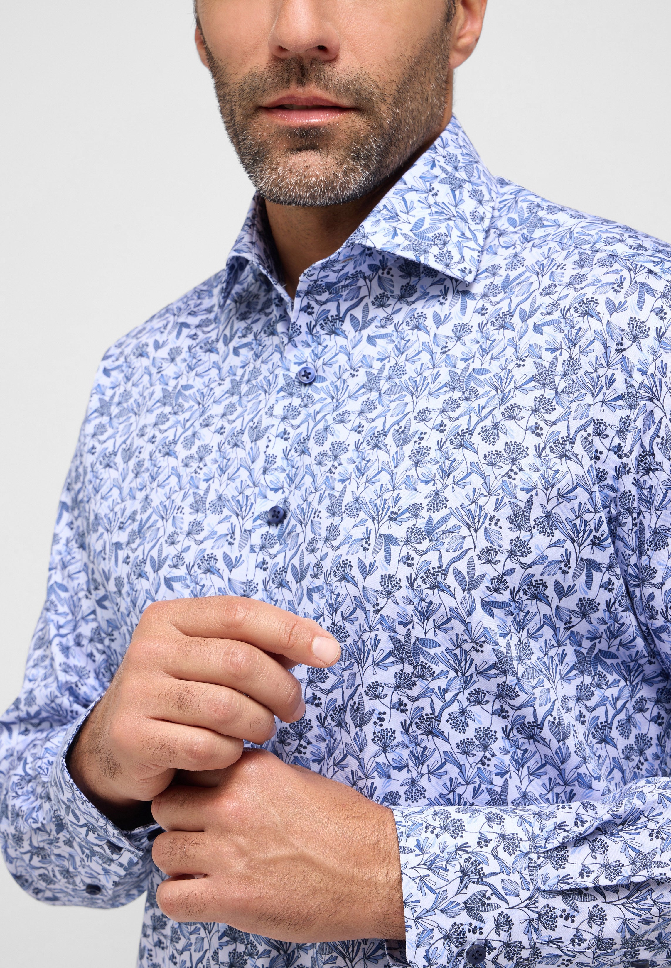 Dieses COMFORT FIT Hemd in bequemer Schnittführung, kommt mit lässigem Alloverprint und Classic Kent-Kragen.