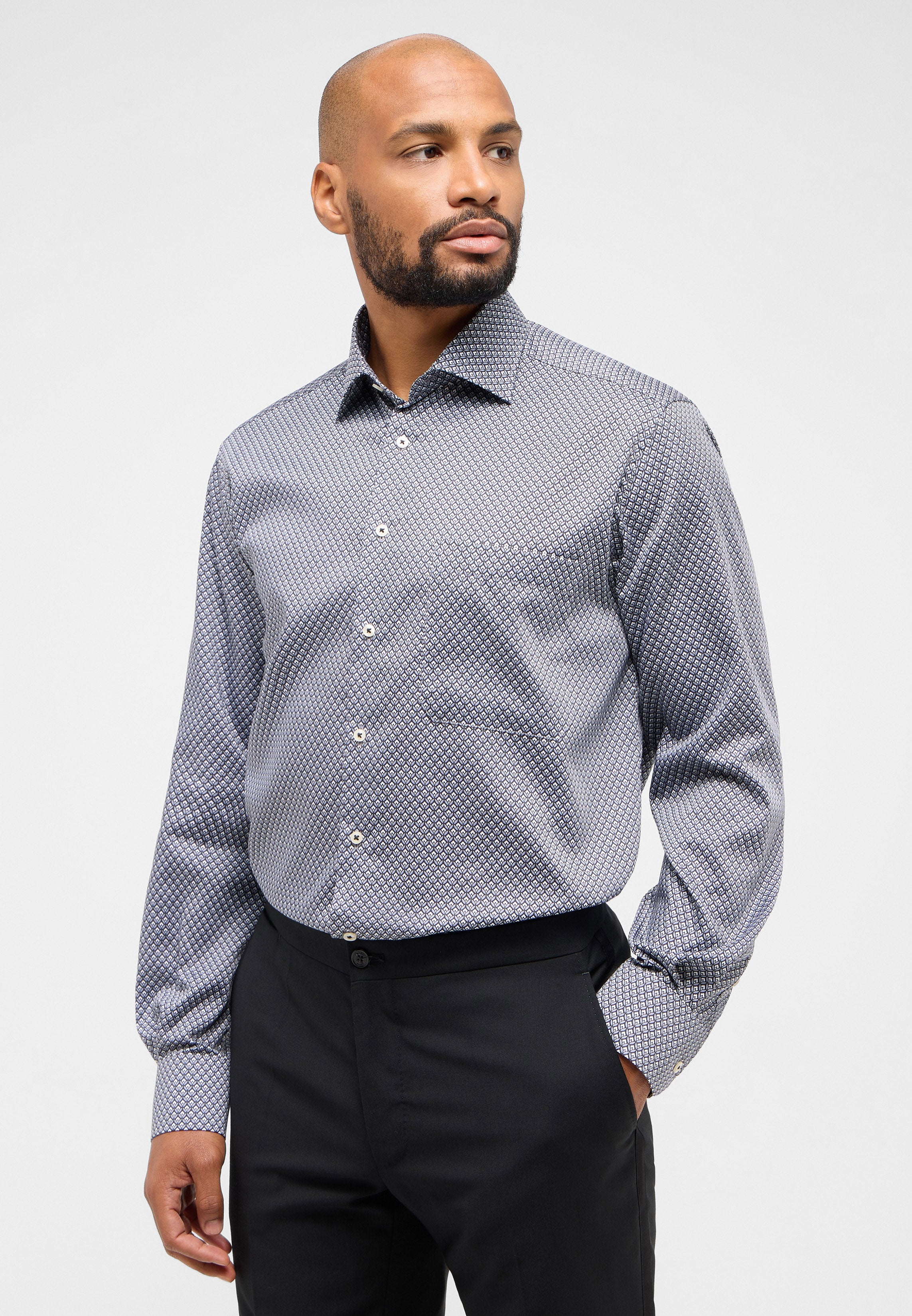 Dieses COMFORT FIT Hemd überzeugt vor allem durch den modischen Print, den Sie sowohl im Office als auch in der Freizeit tragen können.