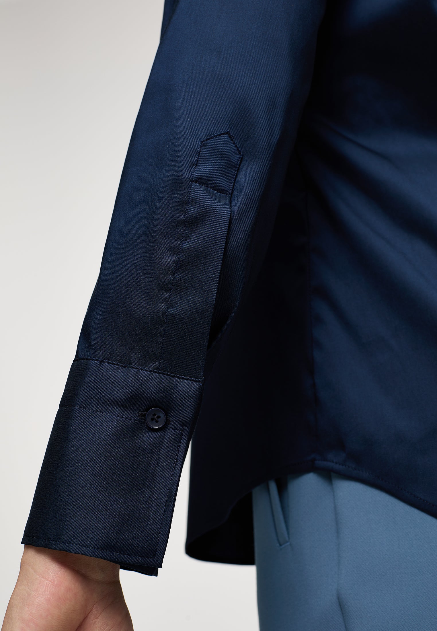Dieses Modell ist leicht tailliert durch die Seitennaht, die Silhouette zeichnet die Körperkonturen dezent nach.
