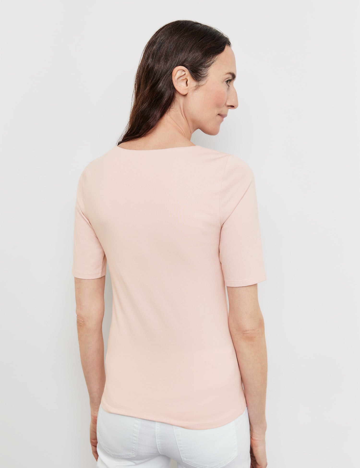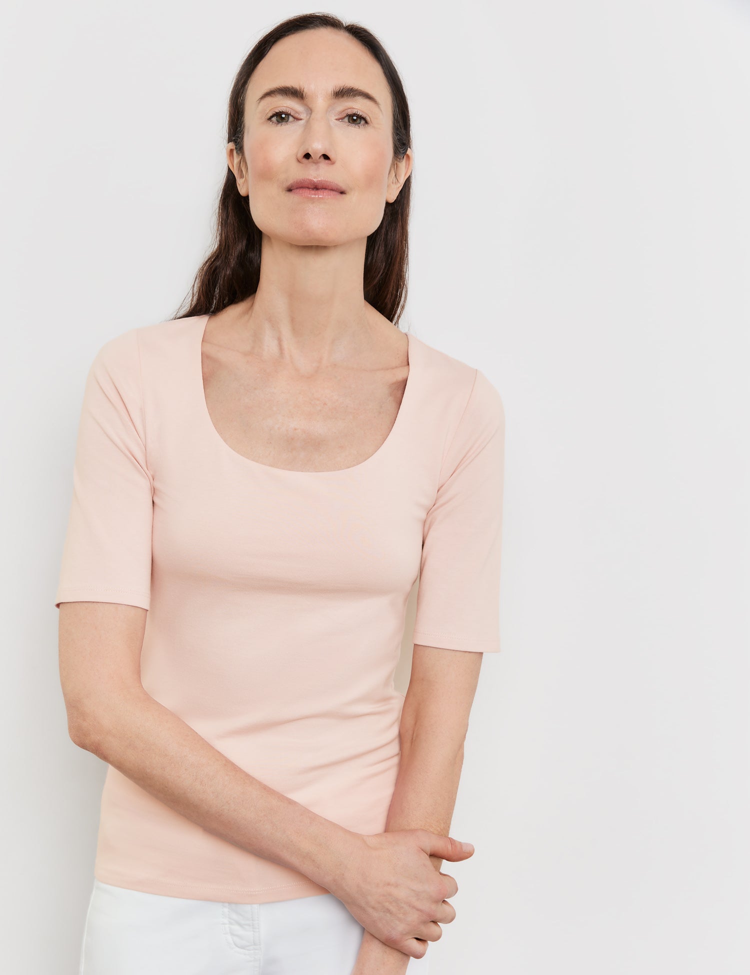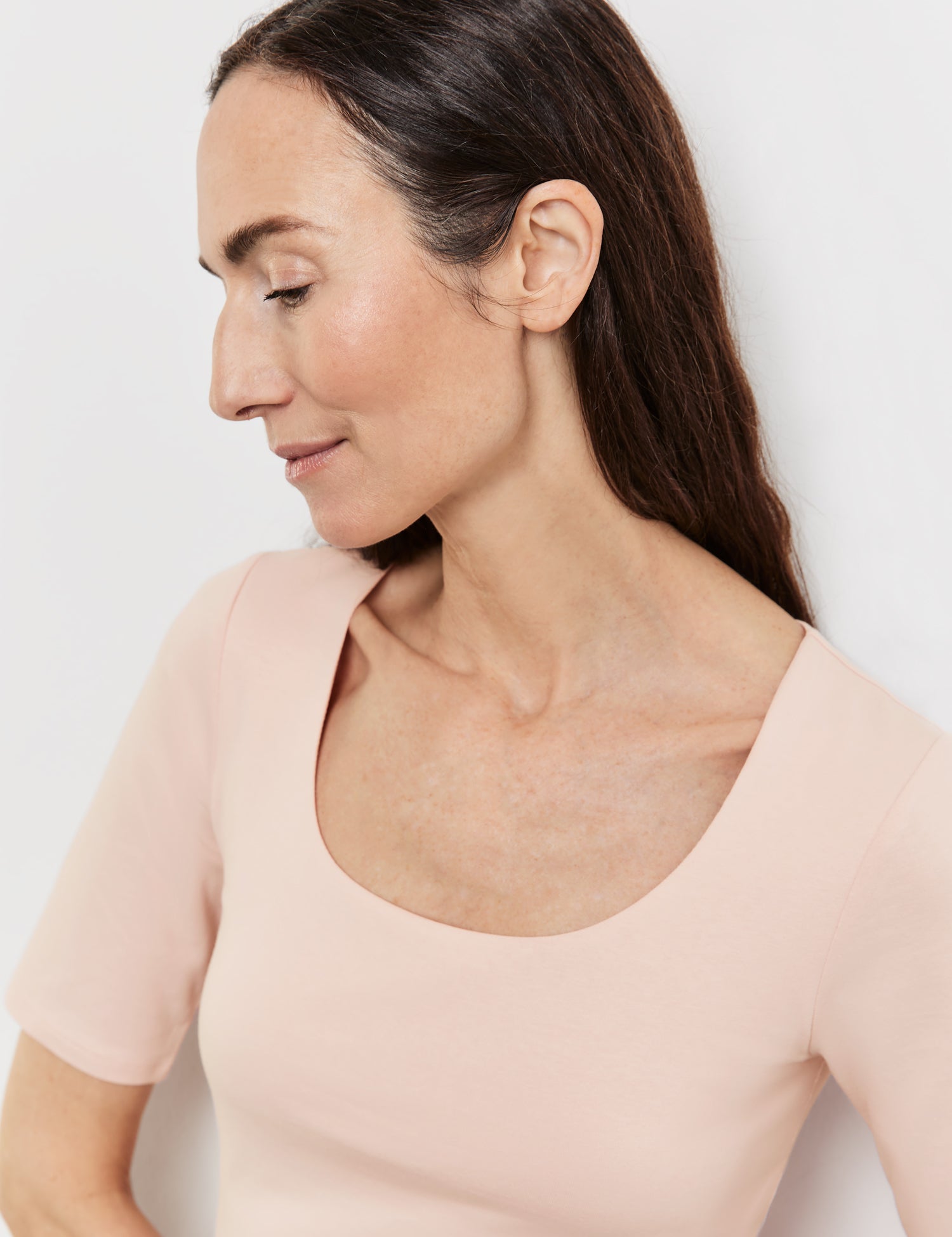 Oberteil mit Bustier verdoppelt. Suchen Sie eine passende Grundlage für verschiedene Outfits? Dieses Halbarmshirt ist aus softer Baumwolle, Stretchkomfort bietet eine angenehme Bewegungsfreiheit. Der Ausschnitt zaubert ein schönes Dekolleté. Dazu können Sie nahezu alles tragen!